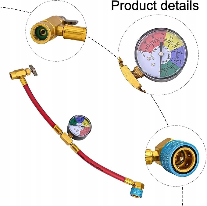 - Удобная конструкция: этот комплект шлангов U-Charge с манометром предназначен для простого и удобного использования. Подсоедините шланг к системе кондиционирования воздуха, канистре и манометру. будет предоставлять показания давления в реальном времени для эффективного мониторинга.