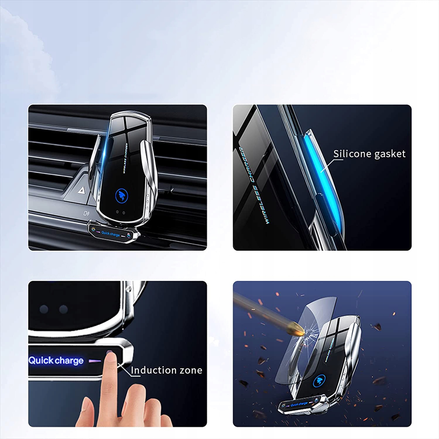 Беспроводное автомобильное зарядное устройство разумно распознает и заряжает устройство на высокой скорости. Совместим со всеми мобильными телефонами (Примечание: магнитная головка (iPhone, тип C, Android)).