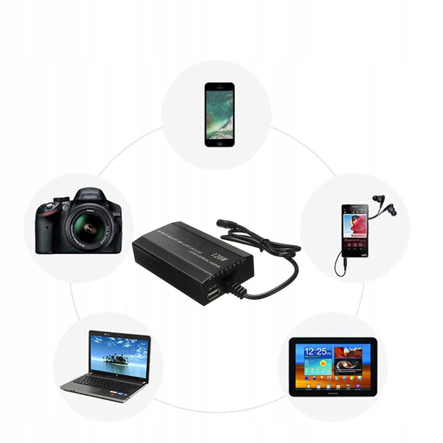 1. DC 12V , 15V , 16V , 18V , 19V , 20V , 22V , 24V (вы можете выбрать переключатель) 5A
