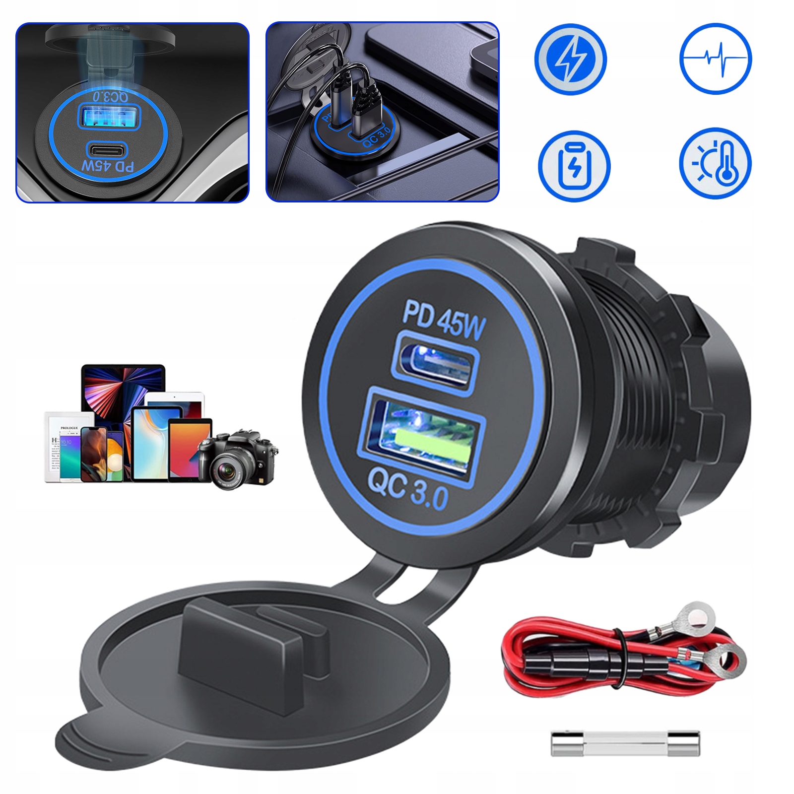 ? Широкий спектр приложений? USB & PD 3.0 USB-зарядка подходит для 12 транспортных средств V-24 V, включая лодки, внедорожные транспортные средства, мотоциклы, грузовики, тележки для гольфа, автохомы, корабли и внедорожники и т. Д.