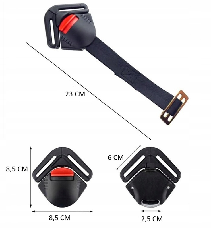 Продуманная конструкция позволяет пряжке идеально сочетаться с ремнями безопасности детских сидений. Верхние отверстия шириной 4 см и металлический крючок шириной 6 см обеспечивают совместимость со многими моделями автокресел, доступными на рынке.