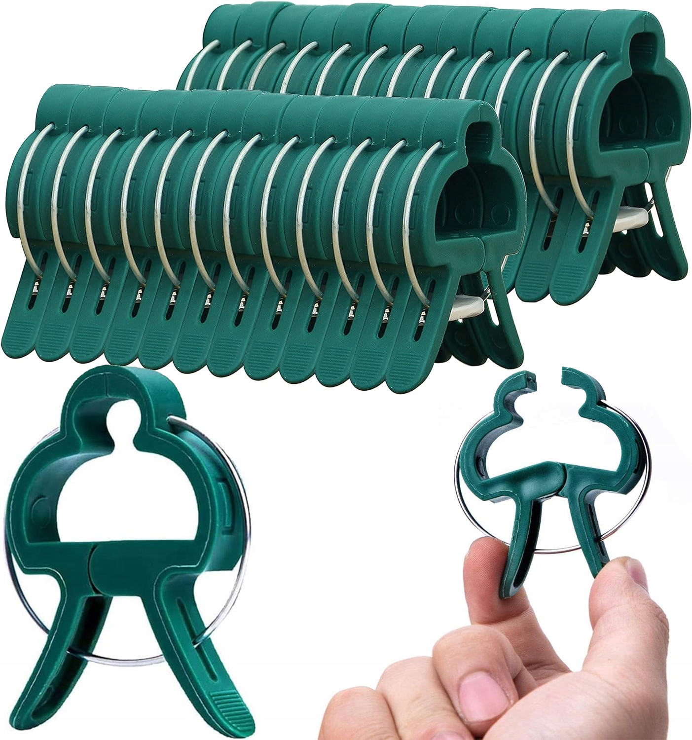 Зажимы изготовлены из прочного и толстого пластика, устойчивого к солнечному излучению. радиационные и механические повреждения. Изделие рассчитано на многократное использование, что обеспечивает беспроблемную эксплуатацию в течение многих сезонов. Зажимы идеально подходят для крепления цветов, таких как орхидеи, а также побегов овощей, таких как помидоры, огурцы, горох, фасоль, или для крепления виноградных лоз, растений или высоких кустарников, таких как глициния, роза, гортензия или плющ. Их используют для прикрепления стеблей растений к веревке или леске, обеспечивая вертикальный рост побега. Зажим не перемещается вверх по мере роста растения. Зажимы позволяют удобно удерживать и поддерживать растения.