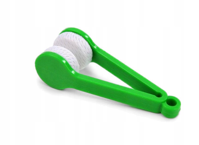Брелок выполнен по образу пинцета. Он оснащен двумя мягкими пластинами из хлопкового микроволокна, которые бережно очищают очки с обеих сторон.