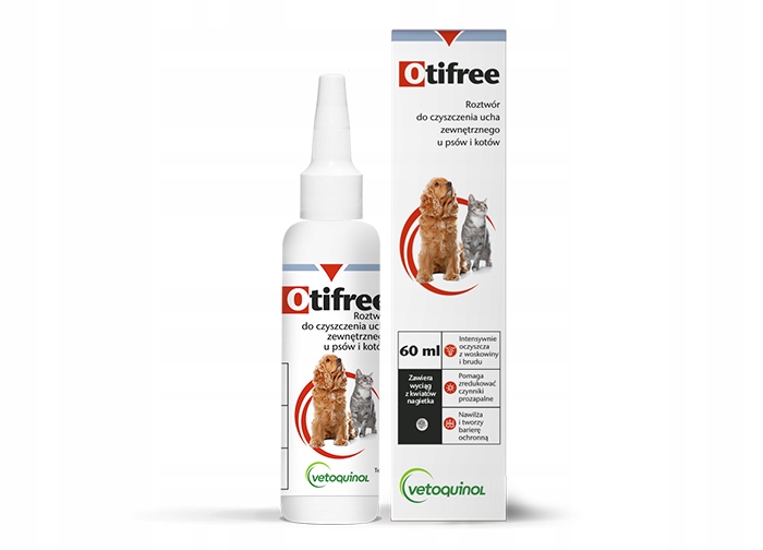 Отифри — препарат для очистки наружного слухового прохода. Это смесь специфических оксиэтиленовых соединений на нейтральной, нераздражающей, специфичной для ушей основе, обладающей сильными очищающими и ухаживающими свойствами. Гибкий кончик препарата облегчает нанесение и повышает комфорт и безопасность животного. Свойства: Состав Otifree обеспечивает интенсивное растворение ушной серы и грязи в наружном слуховом проходе и в то же время не раздражает внешнюю поверхность кожи. Таким образом были получены оптимальные очищающие свойства и эффективно снижено количество факторов, которые могли вызвать воспаление наружного слухового прохода, при хорошей переносимости препарата. Способность растворять ушную серу достигается благодаря соответствующему поверхностно-активному веществу. Масляные соединения предотвращают высыхание кожи, поддерживая надлежащее увлажнение и эластичность, что помогает поддерживать правильную структуру и защитные барьеры. Показания: Очистка наружного уха (наружного слухового прохода) у собак и кошек. Применение: Полностью заполнить слуховой проход раствором; обхватите эластичные части слухового прохода большим, средним и безымянным пальцами, а затем, многократно надавливая, массируйте вверх в вентрально-дорсальном направлении. Таким образом жидкость перемещается вверх и вниз, а рыхлые части секрета вымываются по направлению к ушной раковине. Одновременный массаж ушного прохода повышает удобство промывания ушей, особенно у кошек. Жидкость удаляют из уха ватным тампоном. После выпуска животное удаляет частицы грязи из более глубокой части ушного прохода, покачивая головой.