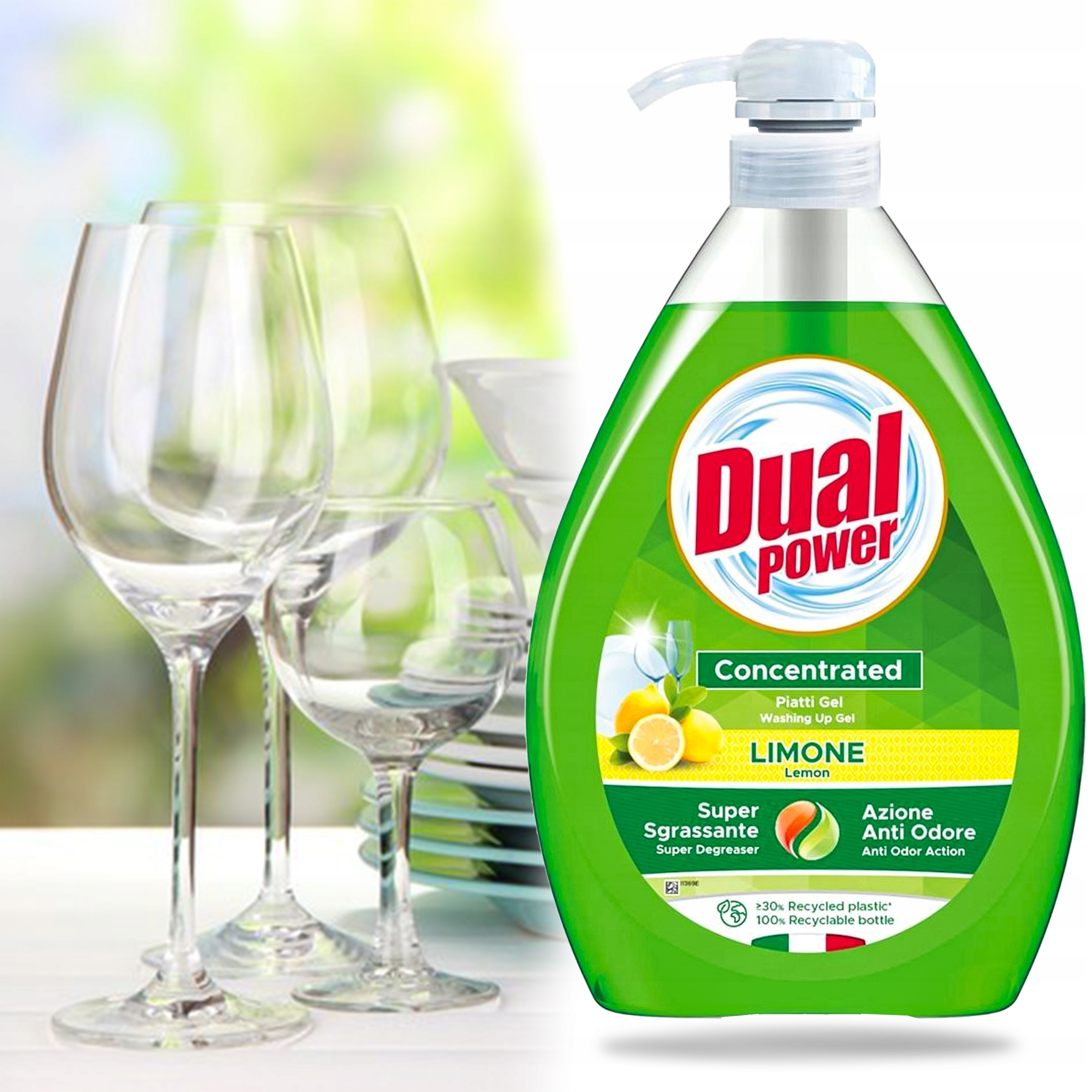 Концентрат Dual Power — гарантия итальянского качества. Это очень эффективный, концентрированный продукт, которого достаточно для многократного использования. Специальная формула облегчает удаление жира и растворяет даже засохшую грязь с посуды!