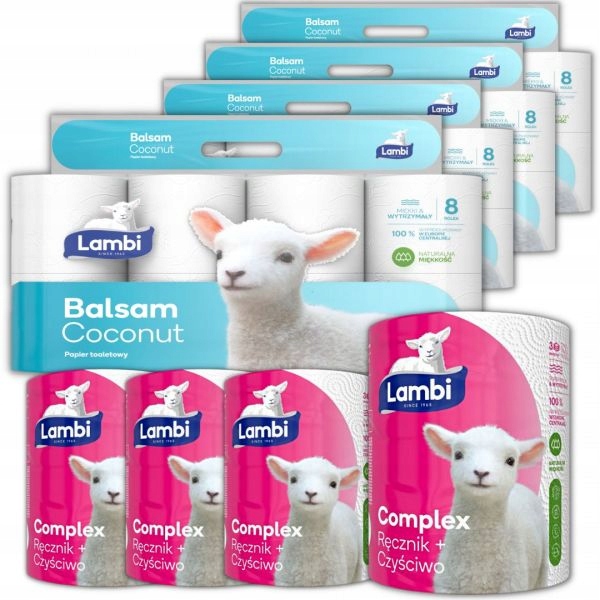 Благодаря нашей упаковке ваш дом приобретет качество и гигиену! В комплект поставки входят 4 упаковки туалетной бумаги Lambi Balsam Coconut (8 рулонов), которая эффективна, безопасна и приятна в использовании, а также 4 упаковки 3-слойных бумажных полотенец Lambi Complex, которые эффективно удаляют самые сложные пятна и полируют поверхности. Подарите себе и своей семье комфорт и гигиену, закажите наш пакет прямо сейчас!