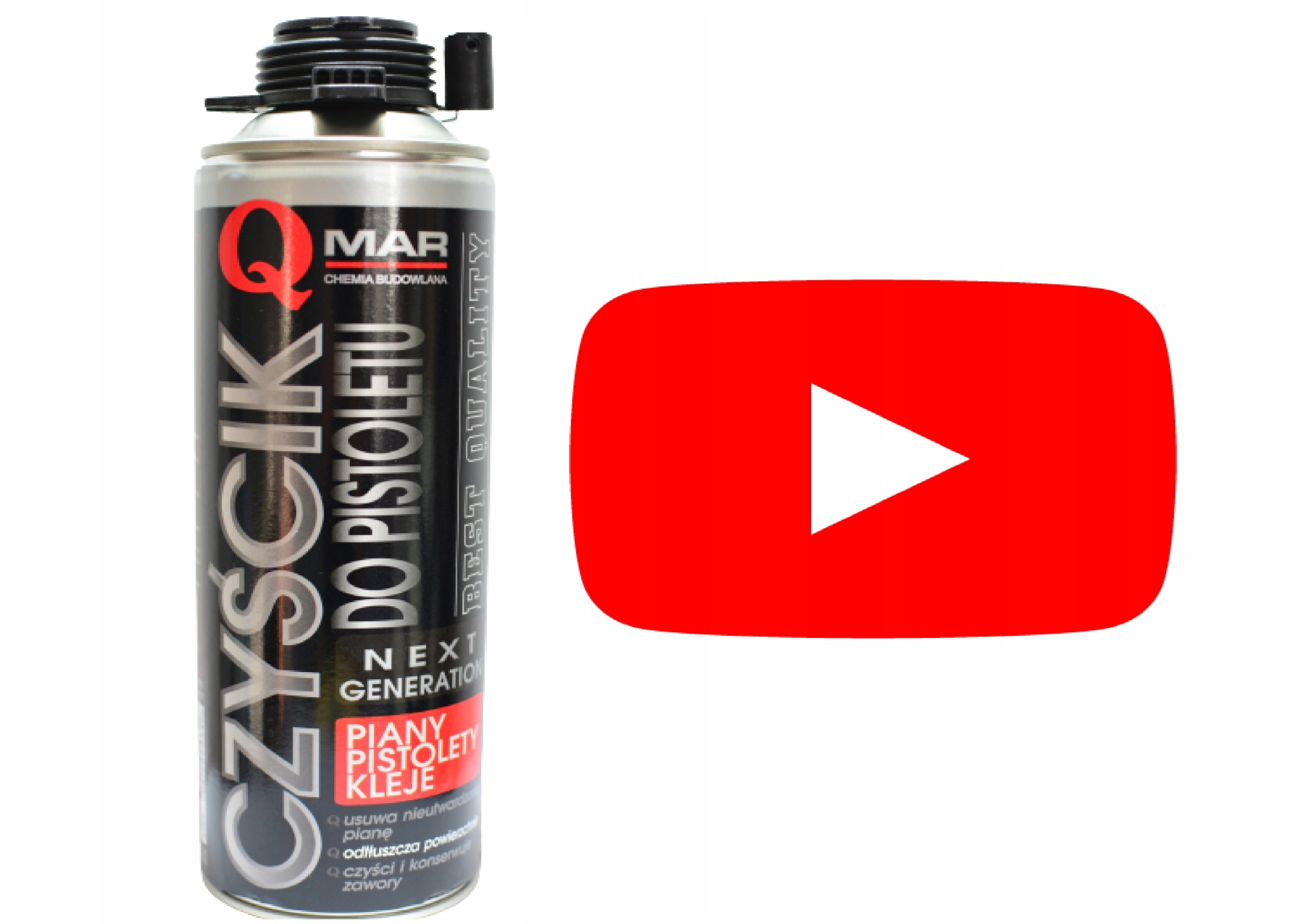 Очистка поверхности: Наденьте прилагаемую красную распылительную головку на клапан очистителя Qmar. Распылите свежую грязь от пенопласта или полиуретанового клея. При очистке грязной горловины контейнера из пенополиуретана осторожно распылите чистящее средство на клапан и переходник пистолета. Удалите загрязнения сухой тряпкой.