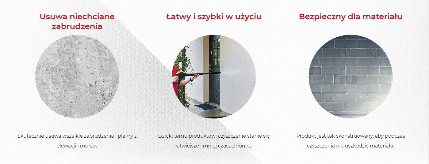 Для клиентов, которые ищут профессиональные чистящие средства, мы рекомендуем, среди прочего, отличную жидкость для чистки фасадов. Это концентрированный препарат, допускающий ручную очистку и очистку под высоким давлением. Средство удаляет темные отложения, пятна и другие загрязнения. Предлагаемое средство для чистки фасадов также предназначено для очистки стен и заборов. Он позволяет легко удалять загрязнения, даже самые стойкие. Что немаловажно, представленные здесь средства по уходу за фасадом полностью безопасны для фасада. Они не повреждают его структуру.