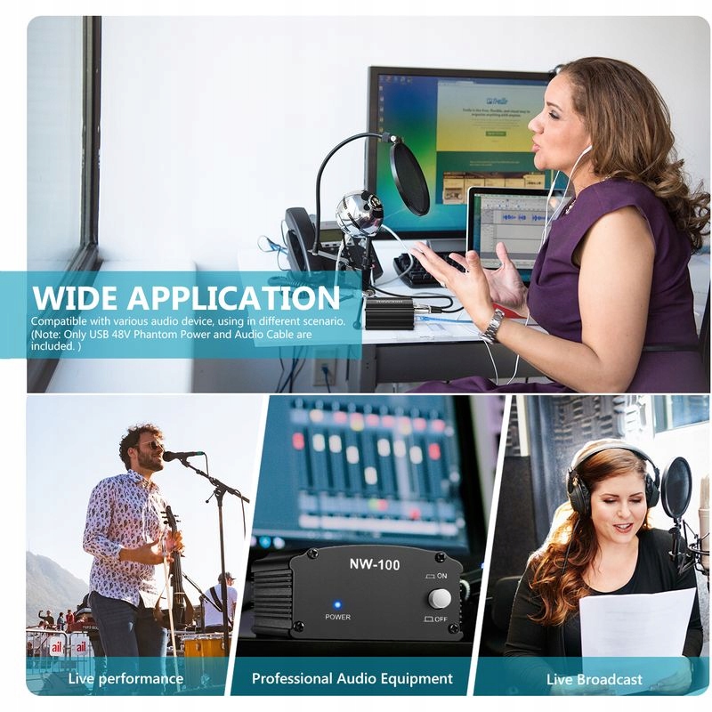 Обеспечивает надежное фантомное питание 48 В для микрофонов. емкостный и передает аудиосигнал на компактную звуковую карту и надежная конструкция.