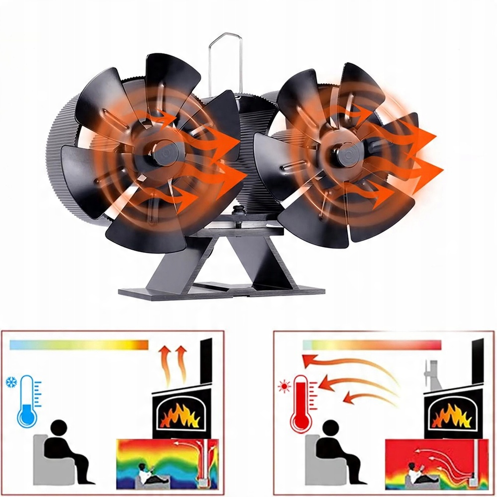ZASILANY CIEPŁEM WENTYLATOR 6-ŁOPATKOWY KOMINKOWY