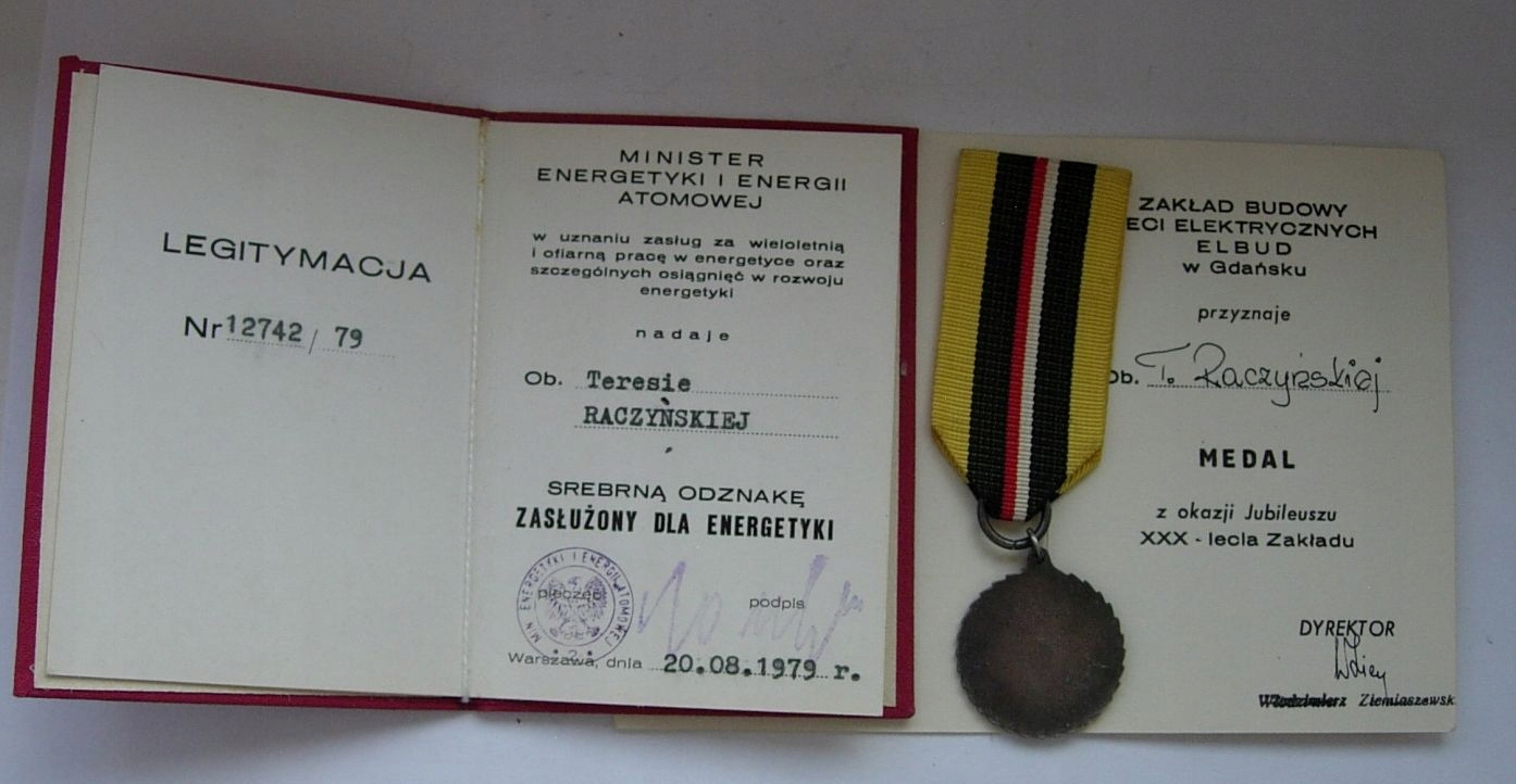 Ленточная медаль заслуга для энергии + идентификационная карта, лот, группа
