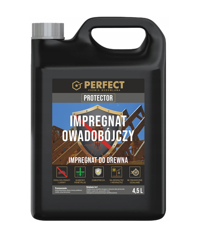 Инсектицидная пропитка для древесины PERFECT PROTECTOR - чрезвычайно эффективная инсектицидная пропитка для защиты строительной и конструкционной древесины от действия насекомых (техническая вредителями древесины) и термитами и борется с насекомыми в уже зараженной древесине.