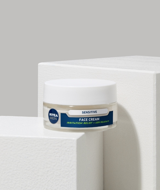 NIVEA MEN SENSITIVE. УВЛАЖНЯЮЩИЙ КРЕМ ДЛЯ МУЖЧИН ДЛЯ ЧУВСТВИТЕЛЬНОЙ КОЖИ, МГНОВЕННО ИЗБАВЛЯЮЩИЙ ОТ РАЗДРАЖЕНИЙ Не содержащая спирта*, легкая, нежирная и разглаживающая крем-гелевая формула быстро впитывается в кожу. Содержит ромашку и витамин Е, которые интенсивно увлажняют (до 48 часов) и успокаивают кожу. Кроме того, крем на весь день избавляет от 5 признаков раздраженной кожи: жжения, покраснения, зуда и ощущения стянутости и сухости кожи. Крем можно использовать сразу после бритья. ПЕРЕНОСИМОСТЬ КОЖЕЙ ДЕРМАТОЛОГИЧЕСКИ ПОДТВЕРЖДЕНА СРЕДИ МУЖЧИН С ЧУВСТВИТЕЛЬНОЙ КОЖЕЙ ЛИЦА.