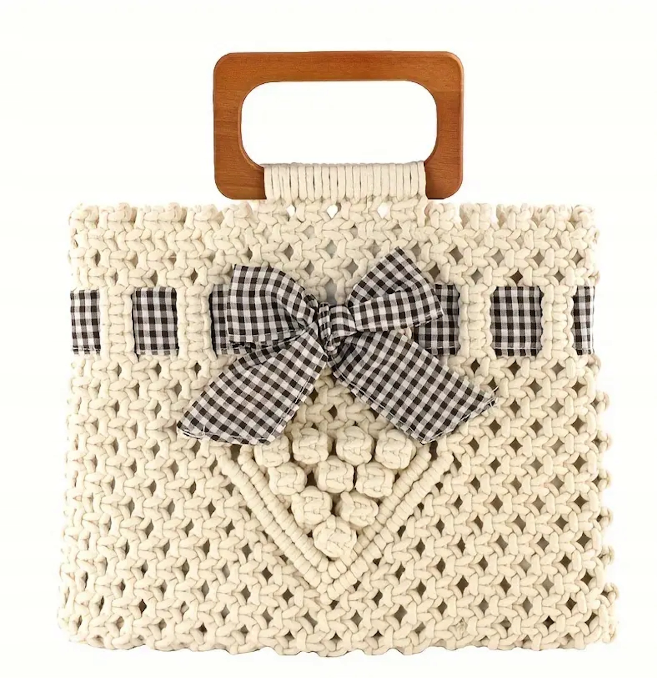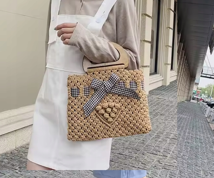 ПЛЕТЕНА СУМКА НА БЛИСКАВЦІ МАКРАМА, ДЕРЕВ'ЯНА РУЧКА, КОШИК-ДУГ