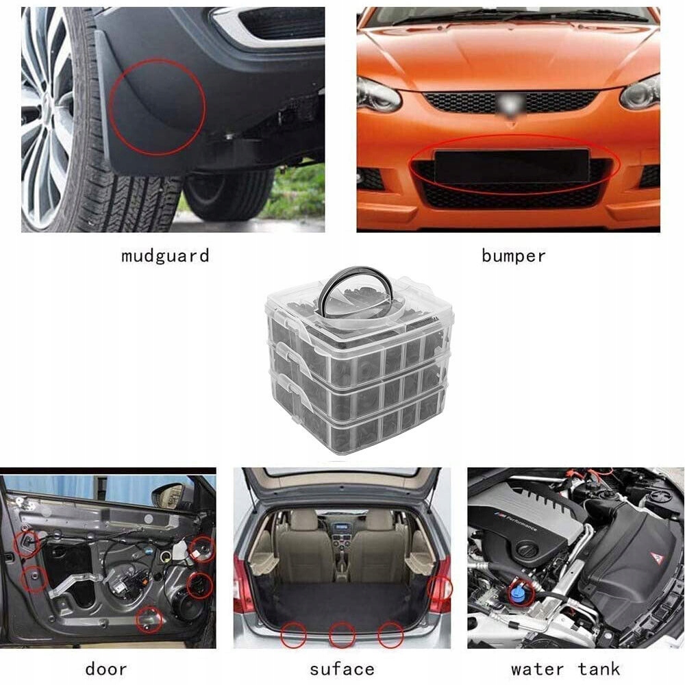Различные крепления для различных деталей автомобиля. Легко выбирать и собирать, поскольку штифты и заклепки хранятся в разных местах.