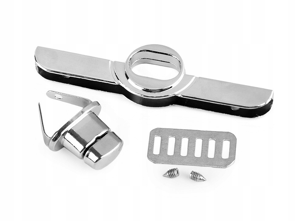 Поворотная застежка отлично подходит для сумок с клапаном. Одна часть крепится к створке с помощью прилагаемых шурупов. Ко второй части крепится пластина, через которую продеваются и загибаются ножки. Застежка изготовлена из немагнитного металла, магнитными являются только винты, пластина и ножки.