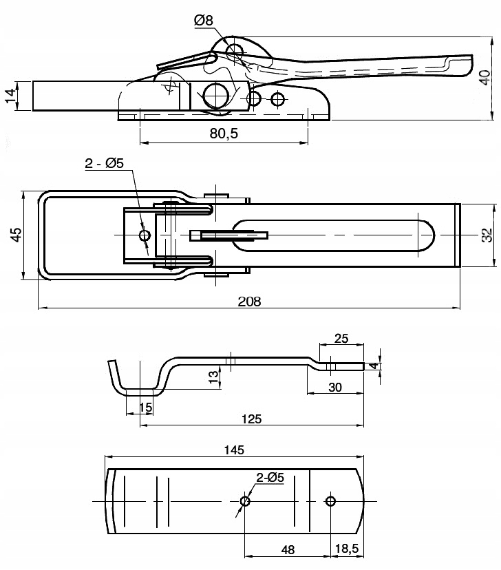 - защелка для закрытия путем соединения двух поверхностей (например, боковин, коробки)