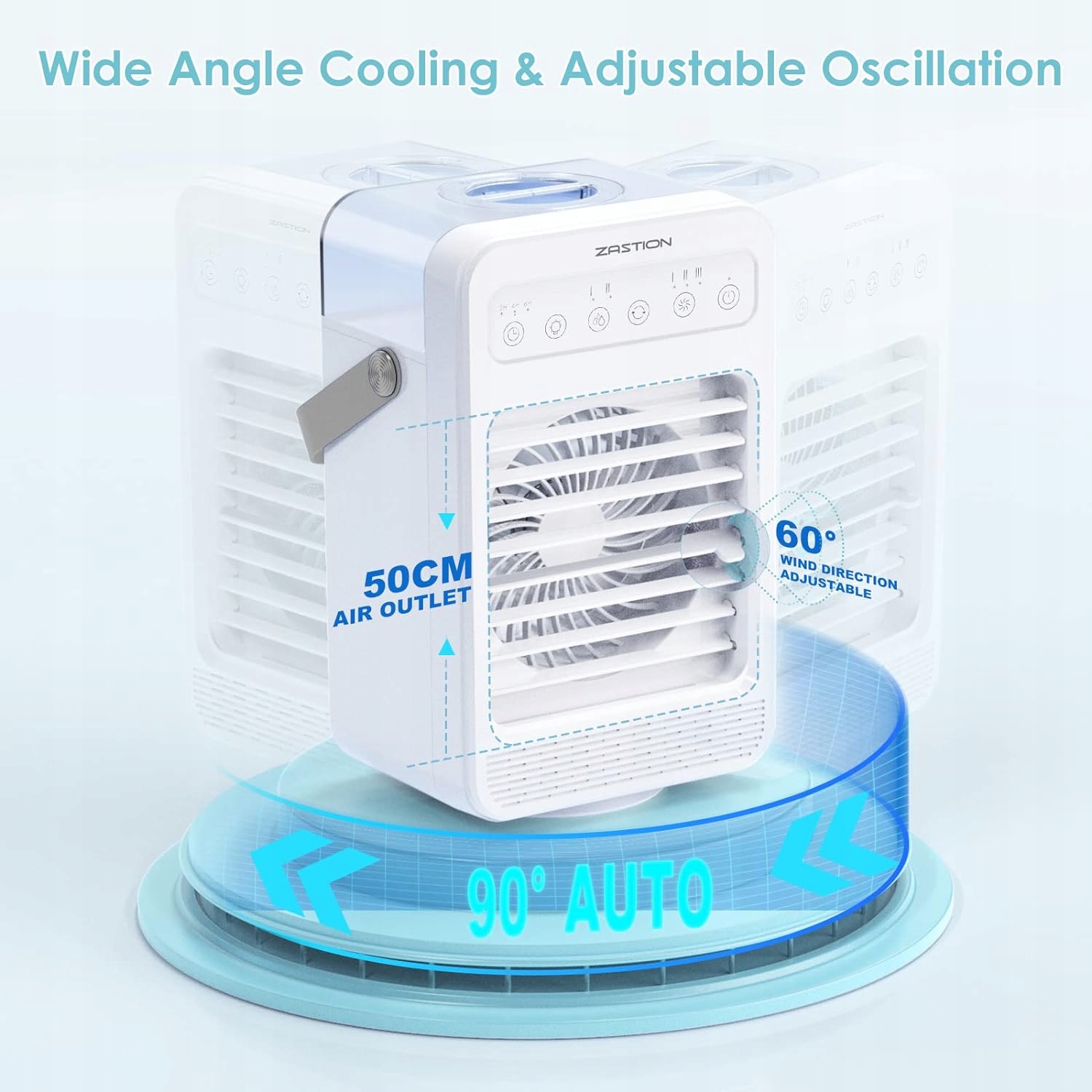Воздухоохладитель с 4 режимами ветра (низкий/средний/высокий/высокий); направление ветра регулируется вверх и вниз на 45 °, а конструкция с автоматической вибрацией головки на 90 ° позволяет циркулировать воздух в более широкой области; обеспечивает постоянный освежающий ветерок, обеспечивая прохладу и комфорт всем в комнате в жаркие летние дни.