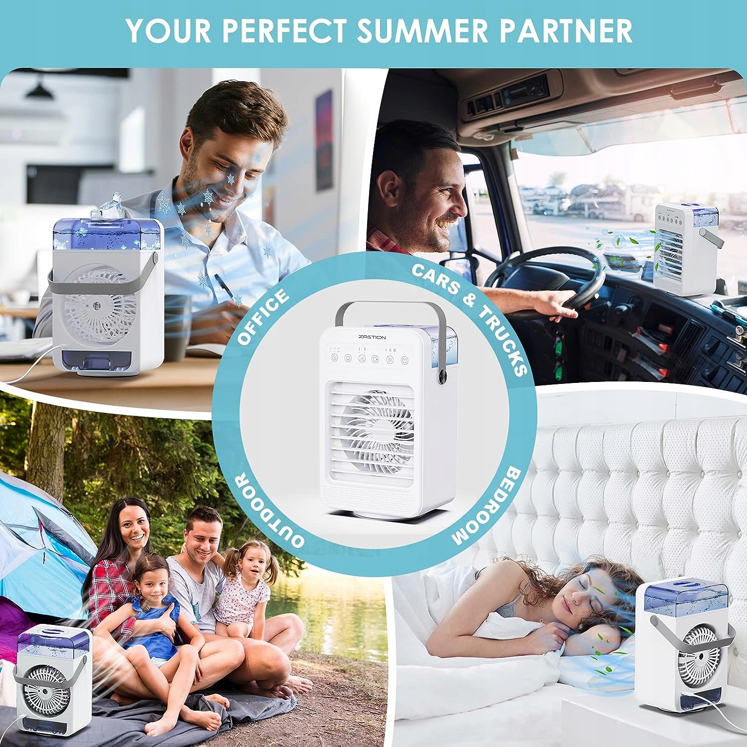 Персональный кондиционер, настольный вентилятор, увлажнитель и очиститель воздуха. Конструкция функции распыления позволяет вам чувствовать себя намного прохладнее при использовании функции распыления. Охлаждает, увлажняет воздух для лучшего качества воздуха, охлаждающая конструкция убережет вас от жаркого лета и позволит насладиться прохладным летом.