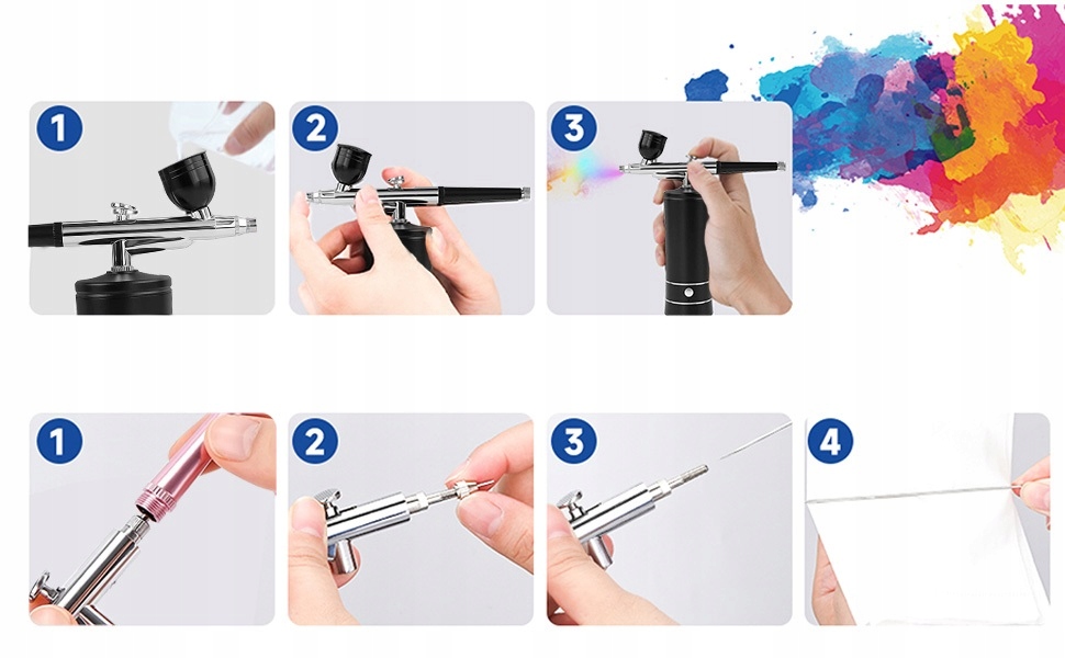 ▶ Электрический аэрограф: Этот электрический аэрограф эффективен и прост в использовании, поэтому вы можете быстро завершить свои проекты. и добиться удовлетворительных результатов.