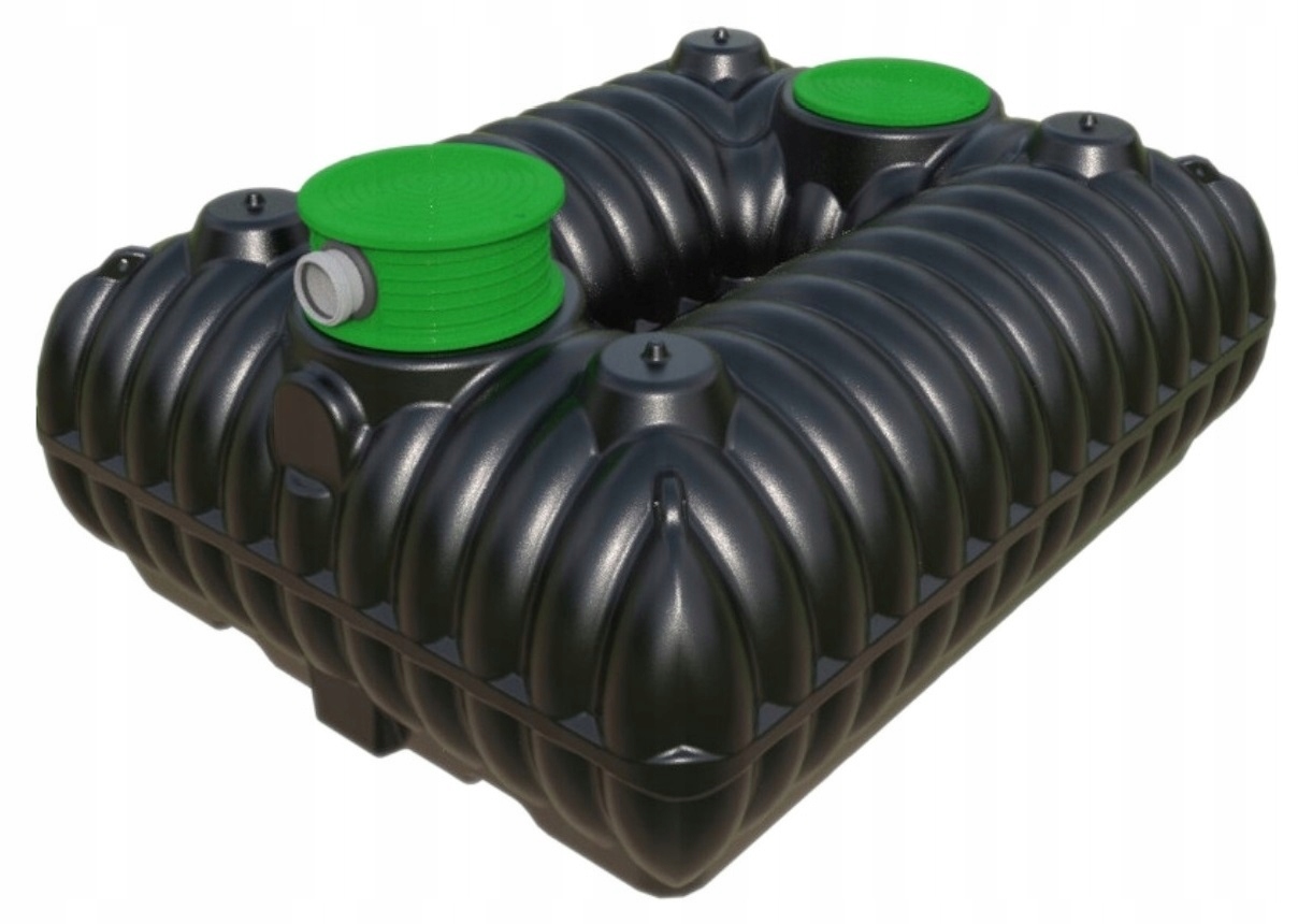 Банк монолитный, полиэтиленовый, оснащенный соединителями и уплотнения, облегчающие монтаж труб, и ревизионный люк с крышкой.
