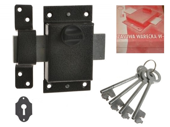Задвижка Wacka W3. Очень прочный затвор, 4 длинных ключа, добротно сделанный, замок открывается с трудом. Используется в основном в гаражных воротах, входных дверях в подвалы, воротах, зданиях ... МЫ РЕКОМЕНДУЕМ - болт для длинных ключей - в этом качестве изготовления непревзойденное соотношение цена / качество. В комплекте: болт, 4 ключа, внешняя накладка, защелка и монтажные винты.