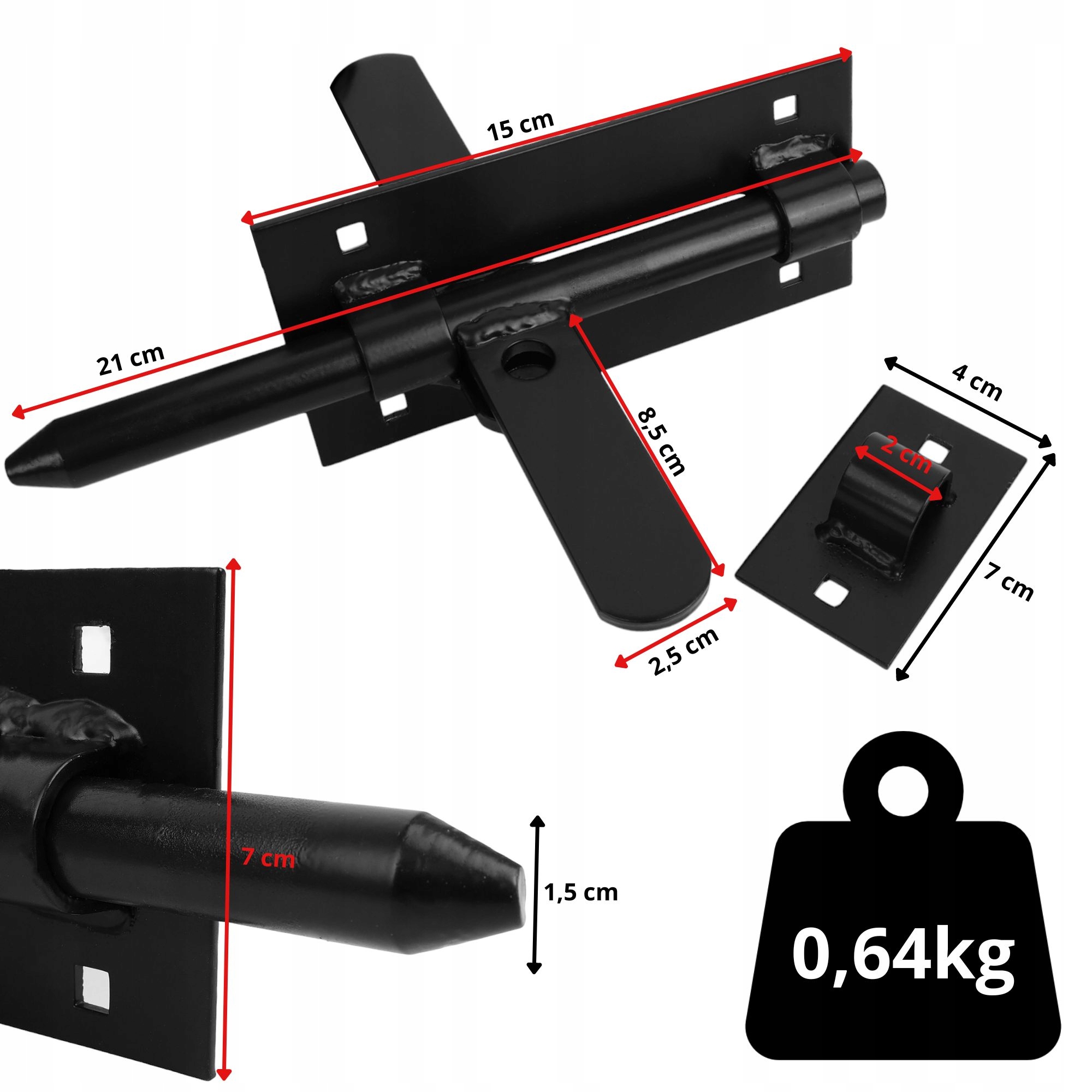 Двусторонний засов, черный, ОКРАШЕННЫЕ ВОРОТА ВОРОТА БОЛТ
