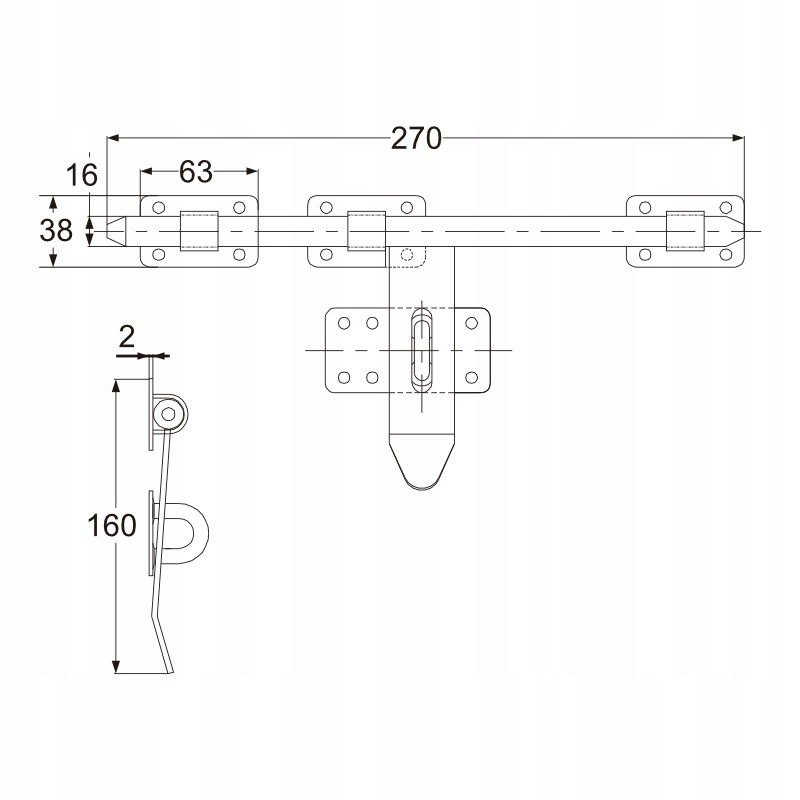 - 270 мм скользящий болт и диаметр 16 мм