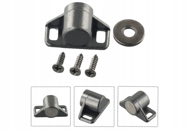 Сильная магнитная сила: Каждая магнитная защелка оснащена сильным магнитом и металлическим уплотнением. Сочетание сильного магнита и толстой металлической пластины обеспечит надежное закрытие дверей, ящиков, крышек или дверей вашего шкафа.