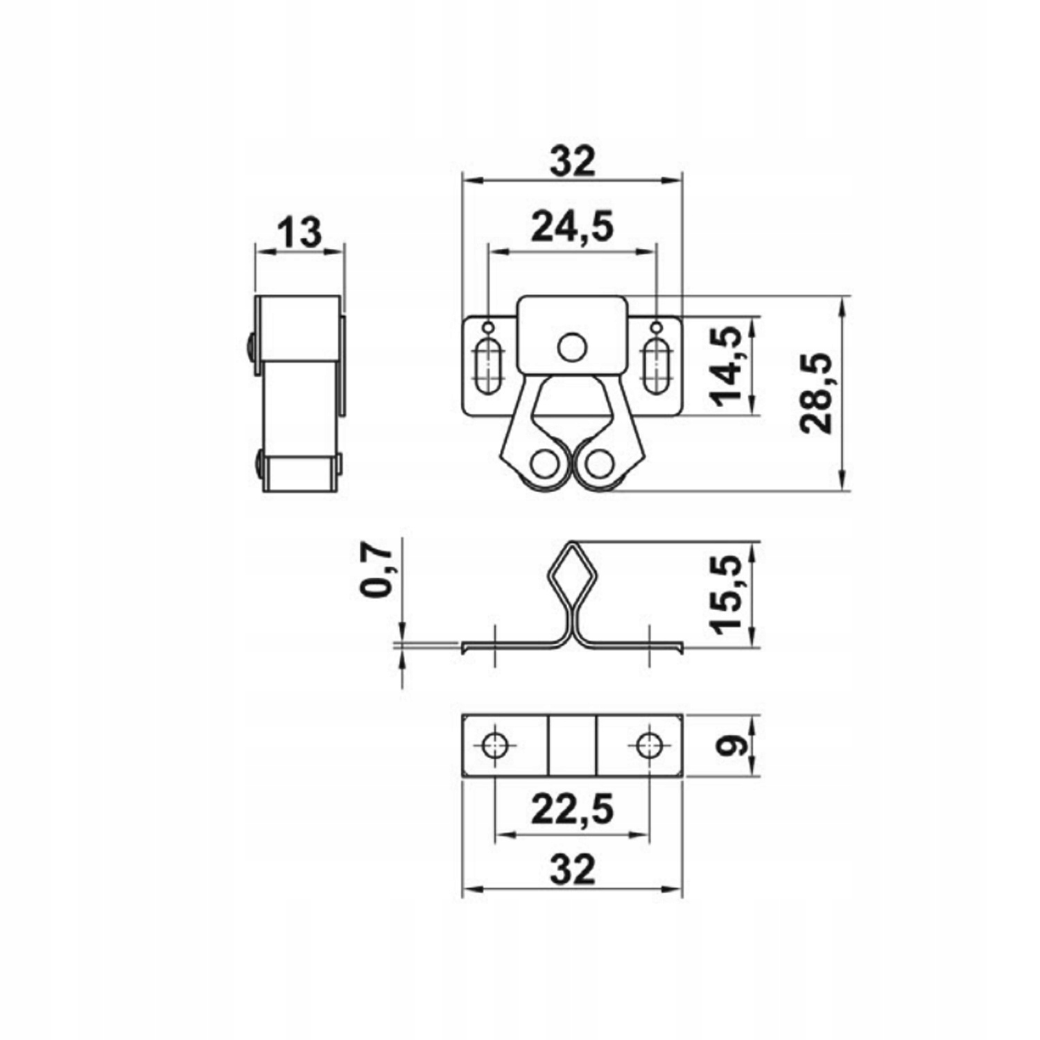 Защелка роликовая мебельная, штампованная, оцинкованная - 4 шт.