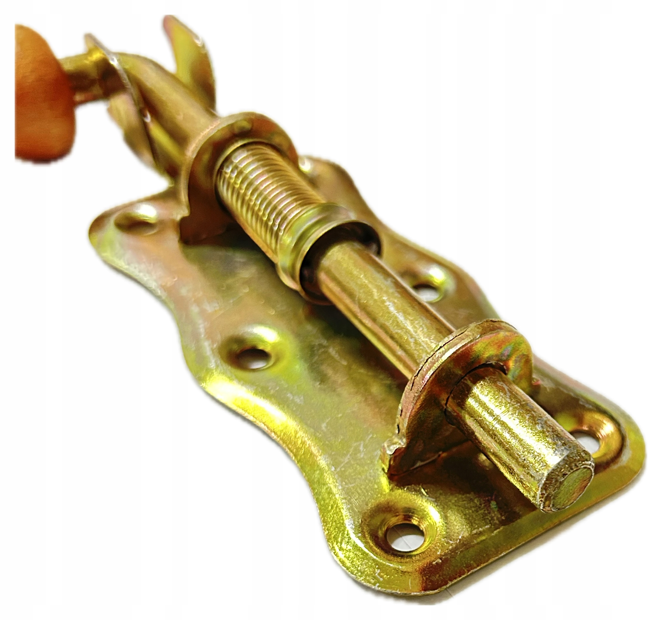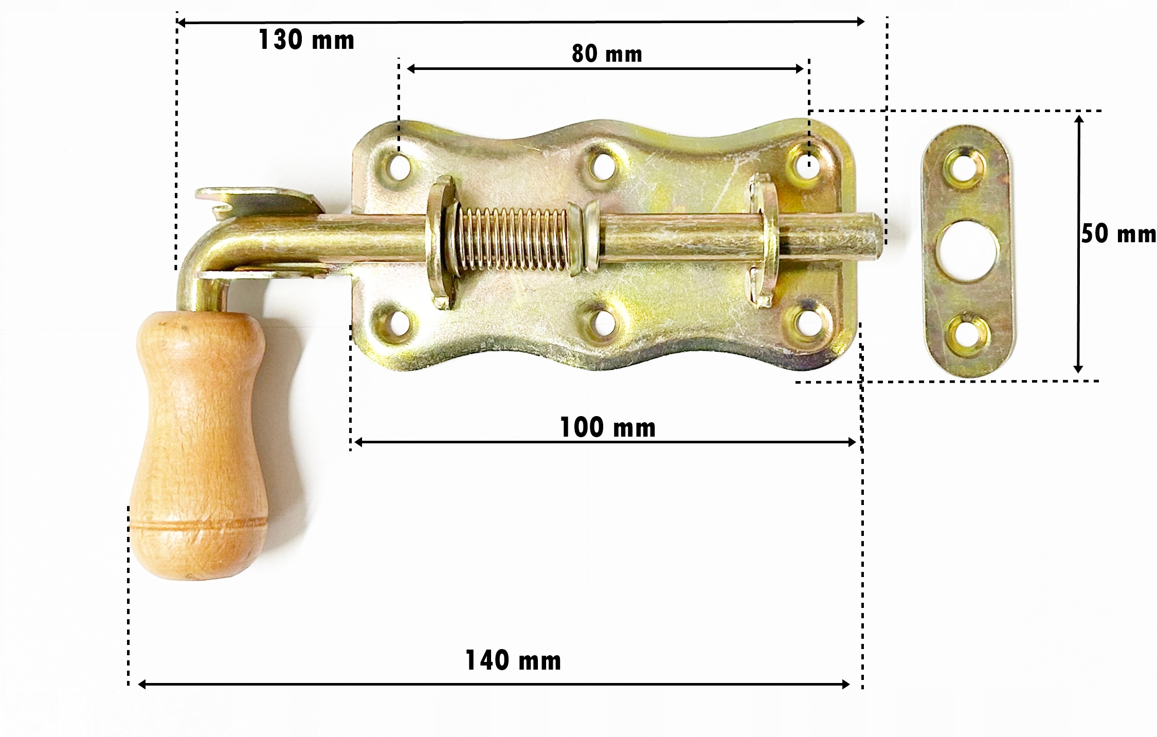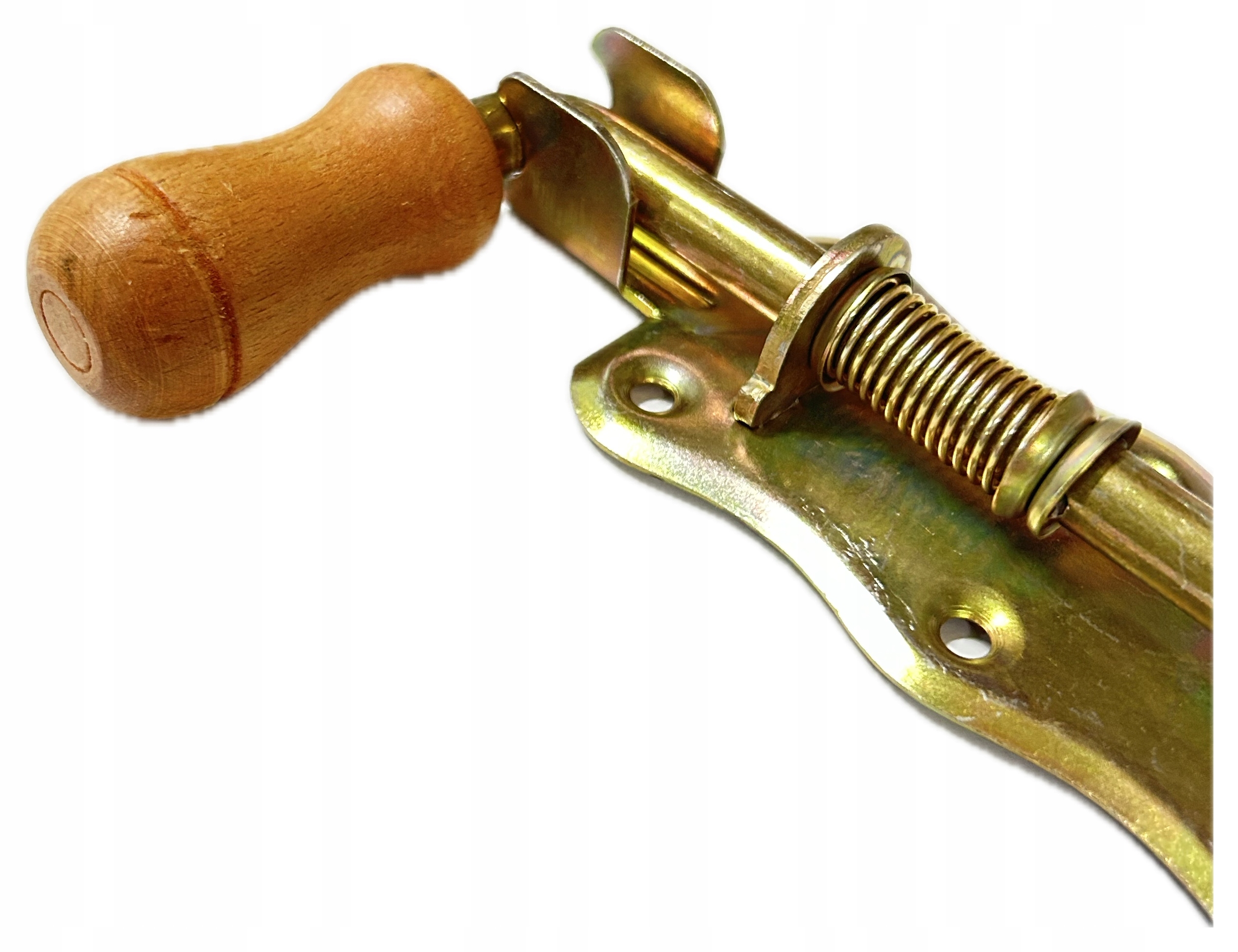 Пружинная защелка полностью произведена в Польше. Он изготовлен из оцинкованного листового металла, его прочная конструкция обеспечивает длительный срок службы. Защелка имеет крашеную деревянную ручку. Предназначен для установки в различные типы дверей, калиток и ворот.