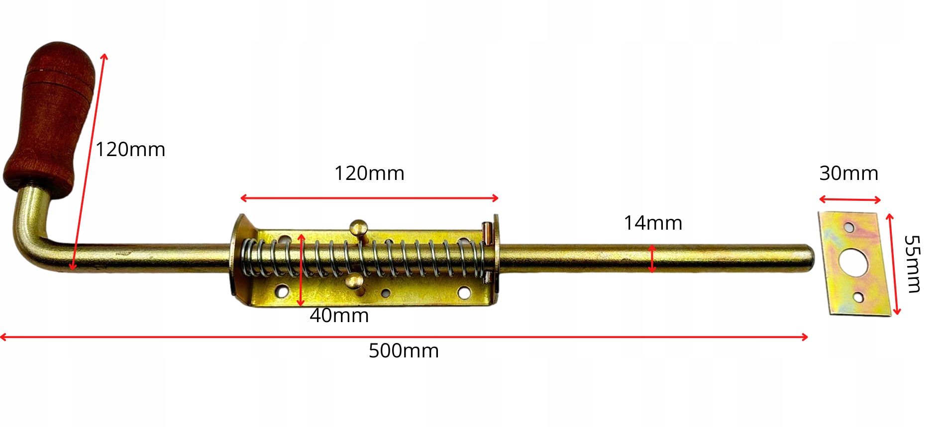 Засувка пружинна 500 мм з ручкою