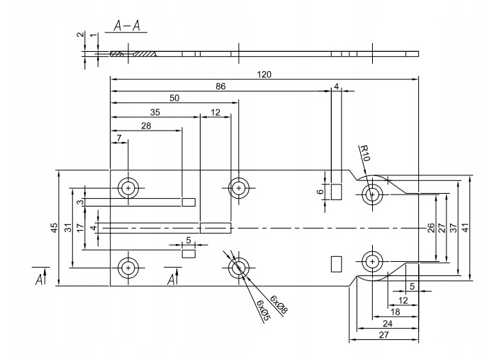 - 8 отверстий - Ø5 мм.