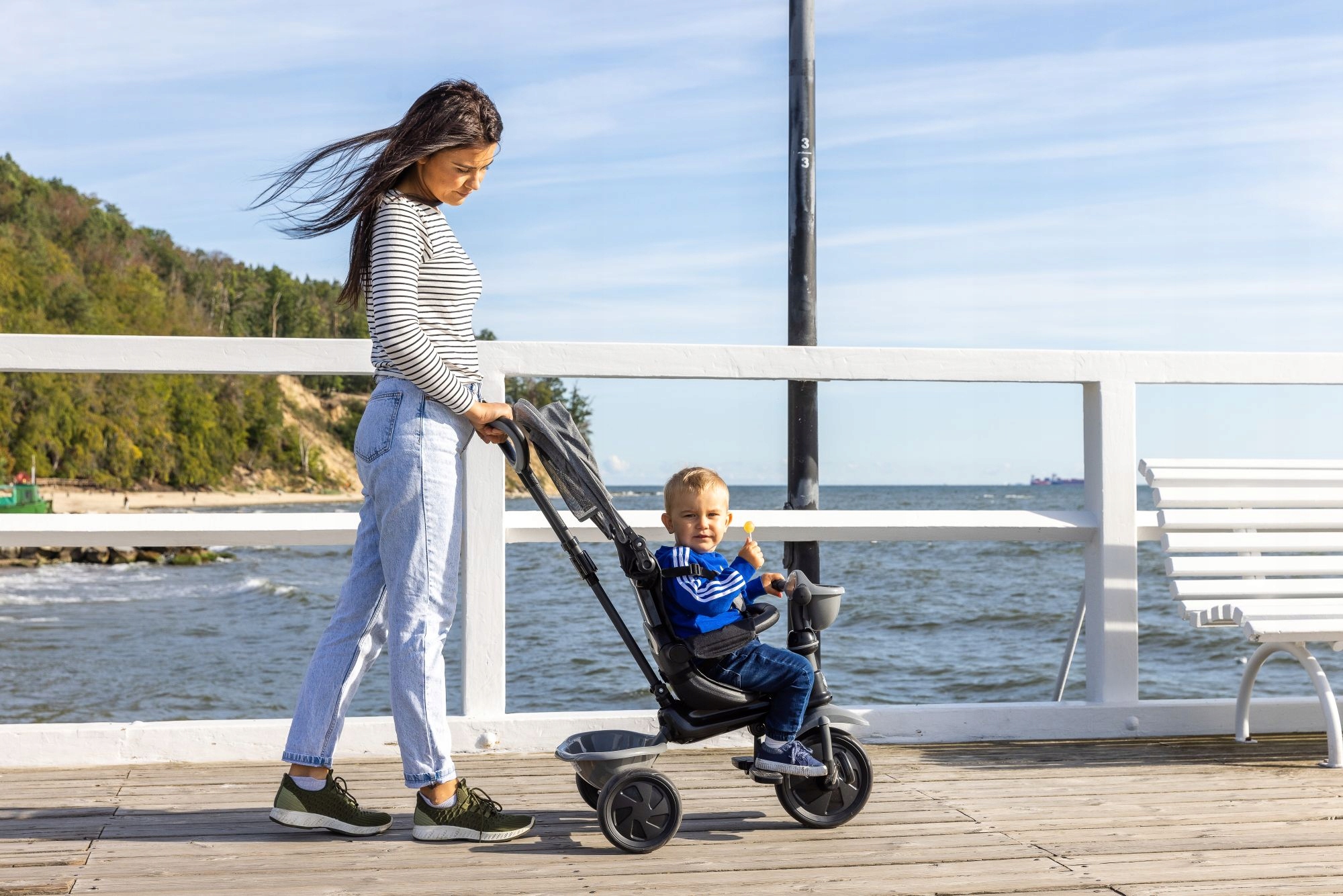 Этап 2. С 18 месяцев ребенок развивает уверенность, равновесие и двигательные навыки, пока вы продолжаете толкать трехколесный велосипед и управлять им.