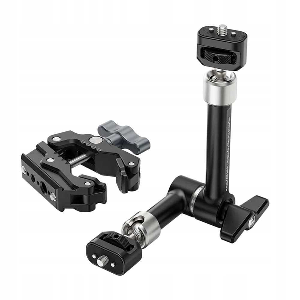 Двухэлементный ulanzi r011a сборка набор для сбора представляет собой ручку с регулируемым зажимом 24-60 мм и сочленяя рука Волшебная рука с длиной 25 см . Оба элемента были сделаны из алюминия . SOLID и Massive Конструкция обеспечивает безопасное крепление камер, светодиодных ламп, мониторов предварительного просмотра и других фотографических и пленочных аксессуаров. Допустимая грузоподъемность набора составляет 1,5 кг