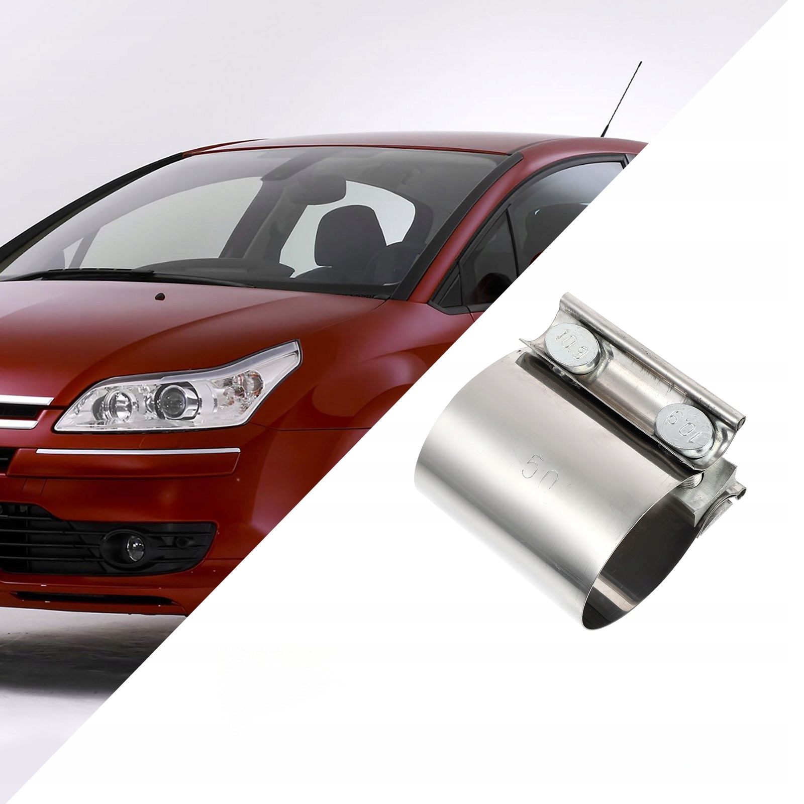 ✅ полоса полос представляет собой широкий металлический ремень, обычно нержавеющий, который обернута вокруг выпускного разъема.