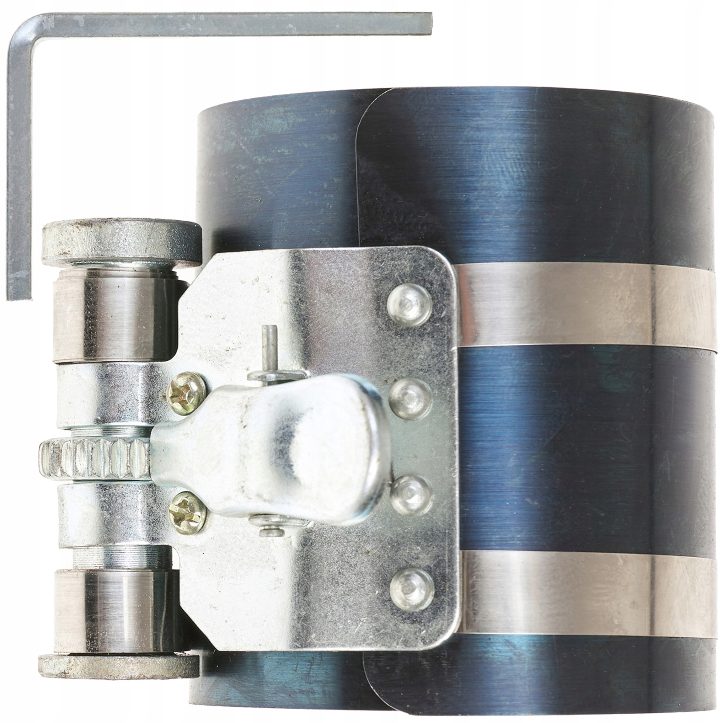 ⭐Поршневая лента с крючком и ключом для затягивания храпового механизма, помогающая установить поршень в корпус двигателя. Кримпер изготовлен из прочной стали, которая очень гибкая и позволяет сохранять правильную форму поршневых колец. Зажимной механизм имеет точную червячную передачу.