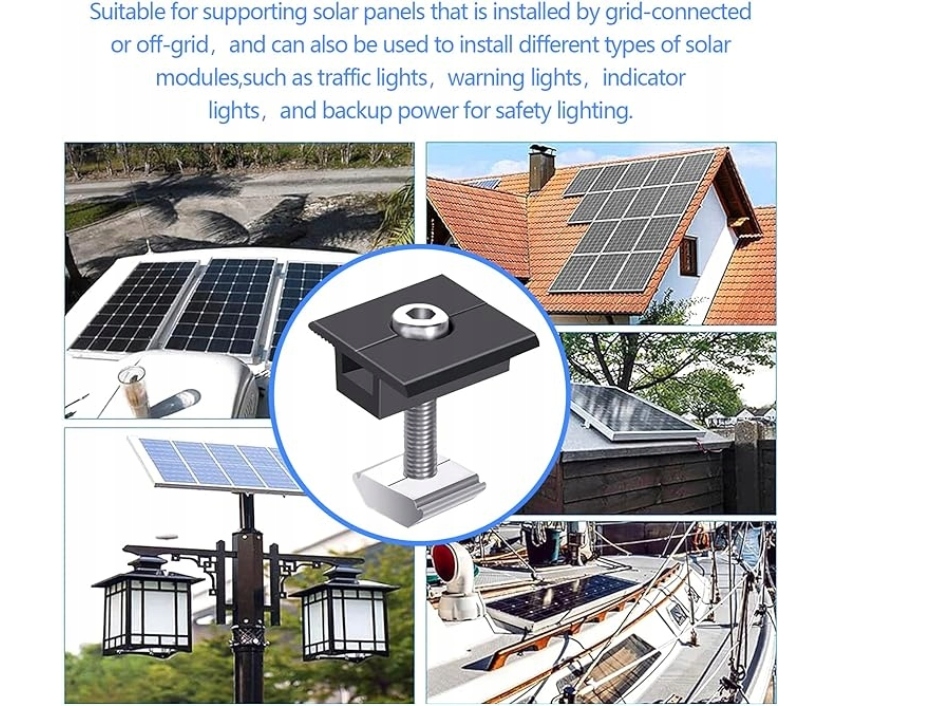 ➡ Безопасное соединение: зажимы обеспечивают некоторое и стабильное крепление солнечных батарей с рамой толщиной 35 мм. Они просты в установке и гарантируют надежную работу в течение длительного времени