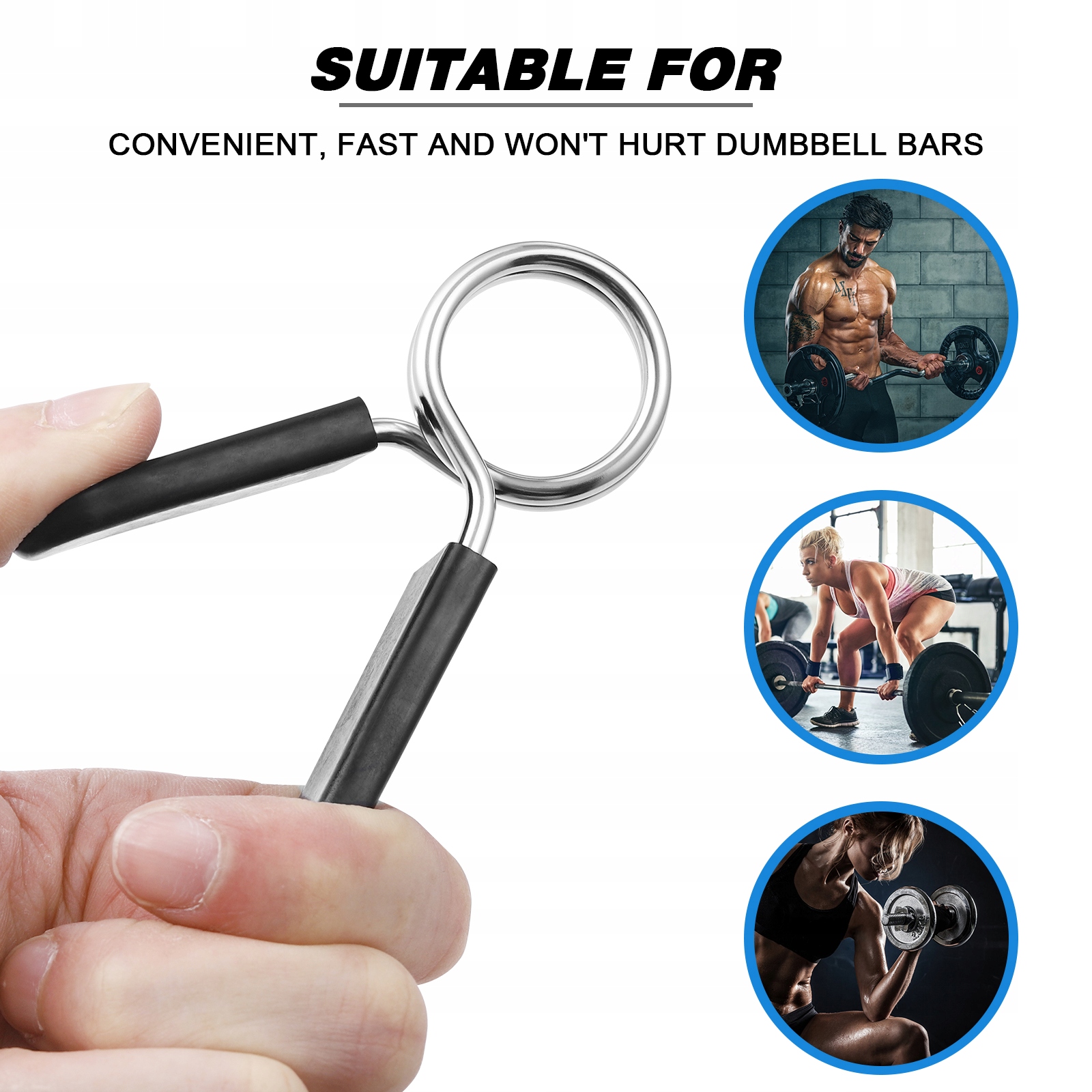 ✅Изделие представляет собой профессиональный и практичный ошейник с пружинным зажимом, который изготовлен из стали и не ржавеет. Ручка из материала ABS, экологически чистая и безопасная в использовании. Он прочен и прост в использовании, не позволяя диску скользить по гантелям или штанге.