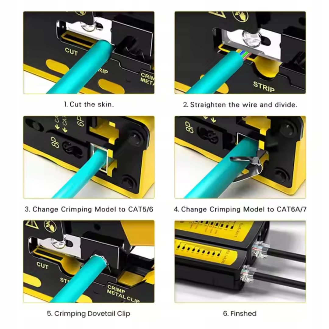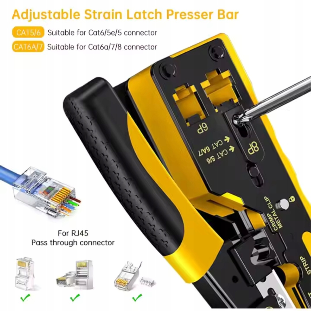 Эта кристаллическая зажимная головка подходит для RJ45 и может использоваться для RJ45 8p 8p Cat5/Cat5e, Cat6/Cat6a, Cat7 6p RJ11/RJ12, вы можете Используйте отвертку, чтобы отрегулировать соединение давление