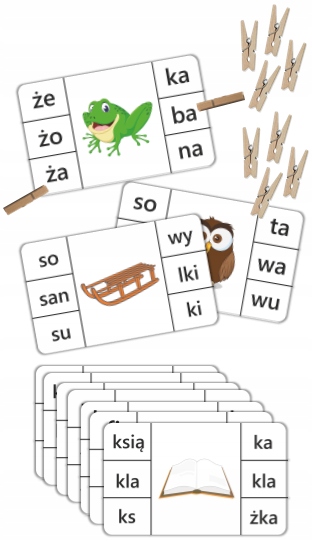 Клип-задания «Двусложные слова» (25 карточек + 12 клипс)