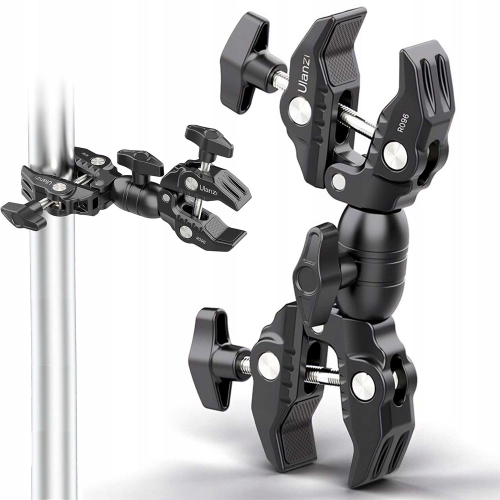 Двойные тиски позволяют крепить фотографические аксессуары, такие как зонты, штативы, палки для селфи, софтбоксы, светодиодные лампы, ко всем типам профилей, балок и трубок диаметром от 12 до 58 мм. >