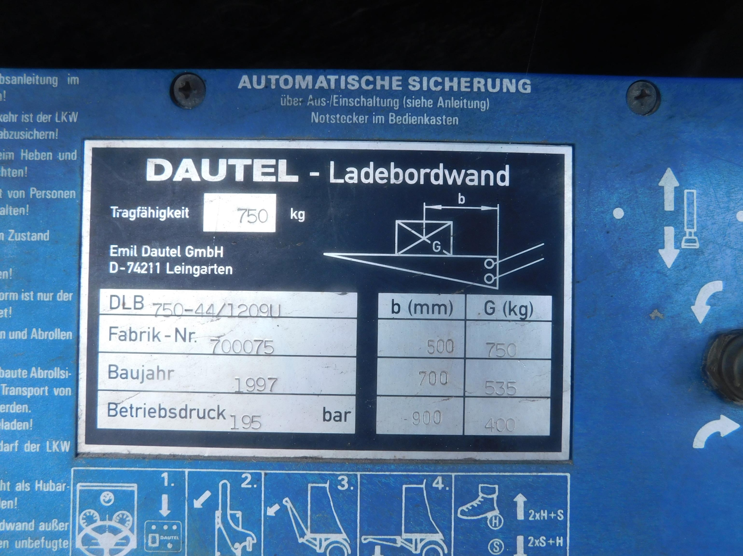 Погрузочный лифт Daugel 750 кг 12 В Mercedes Sprinter 903