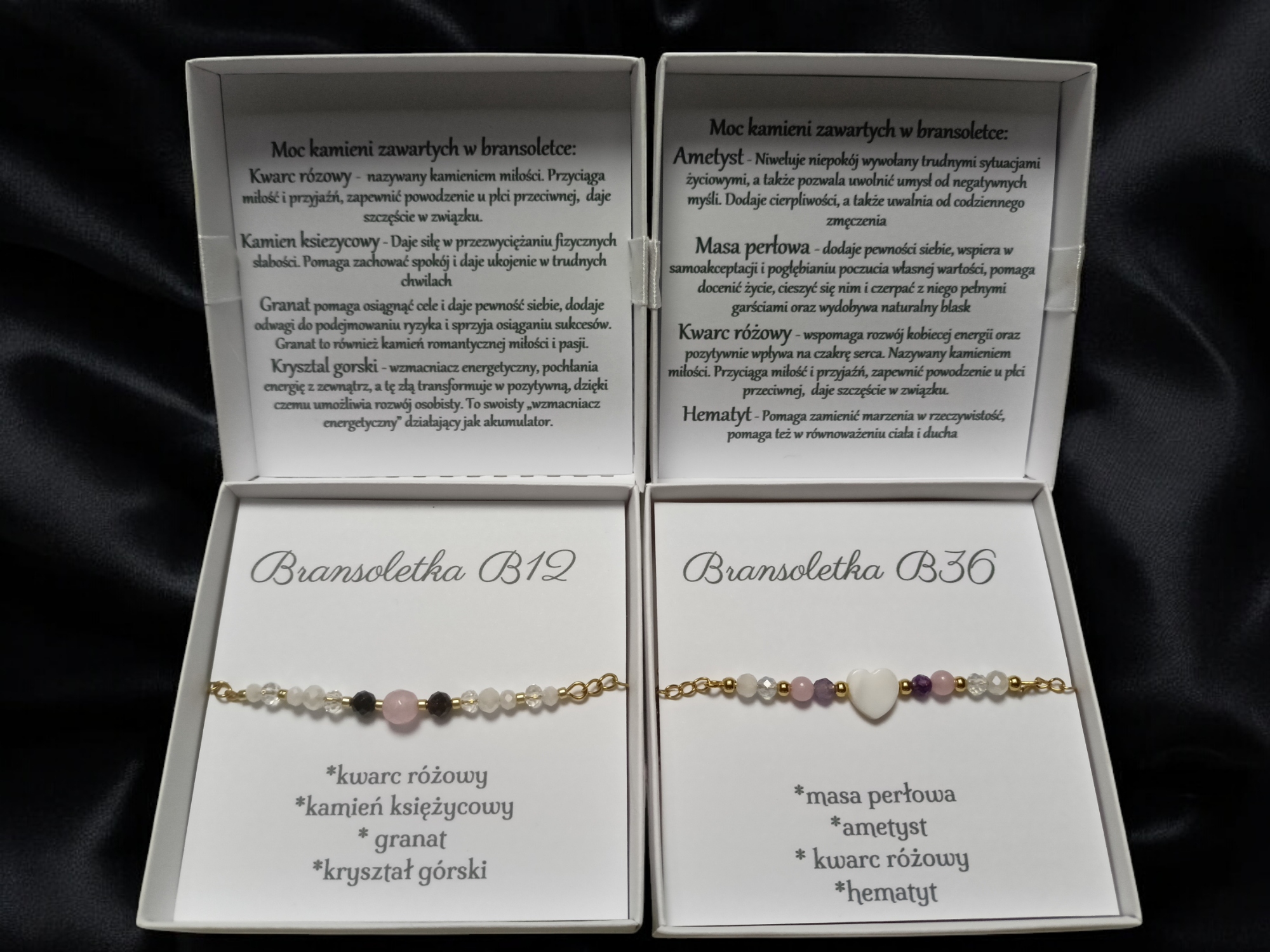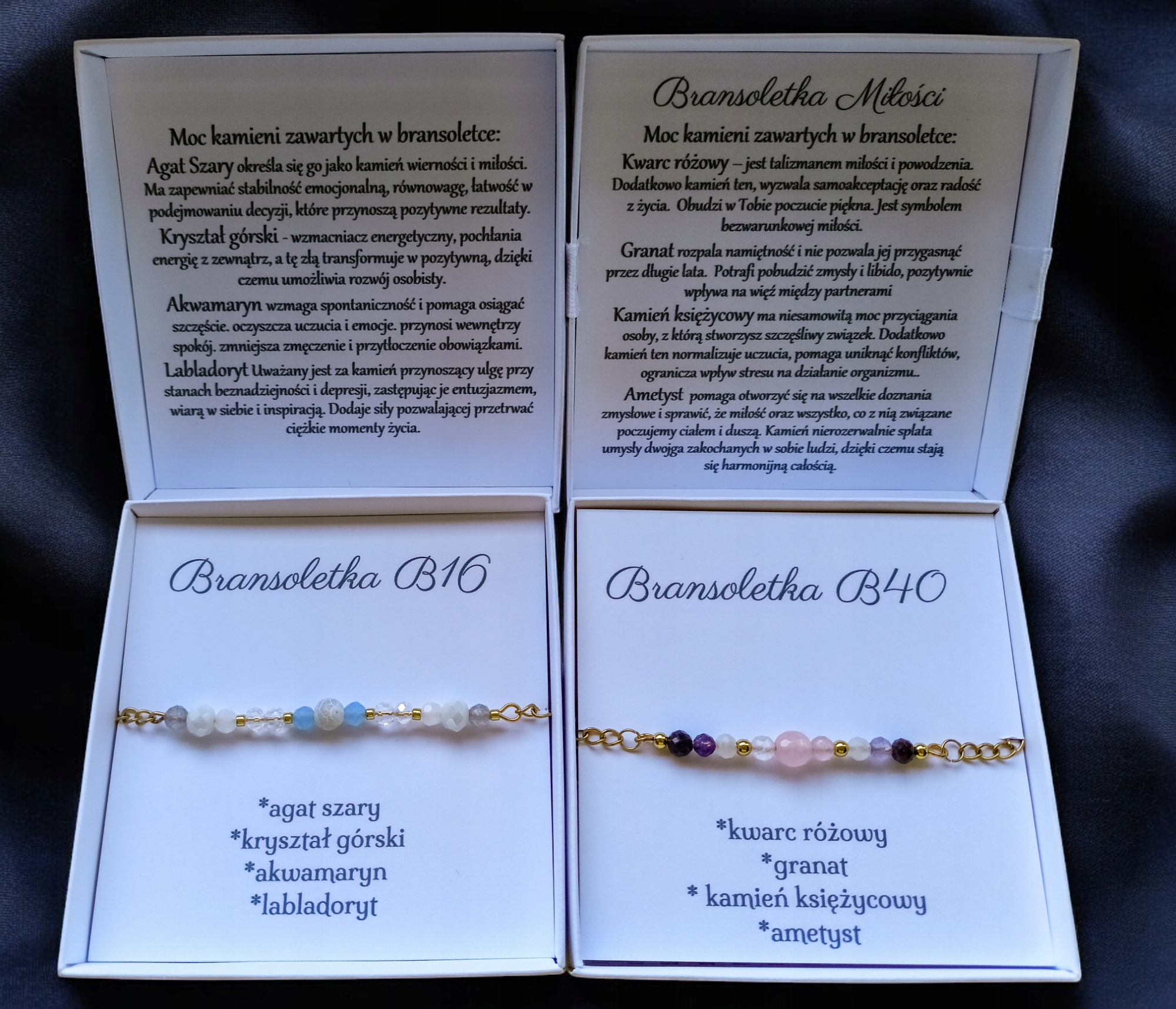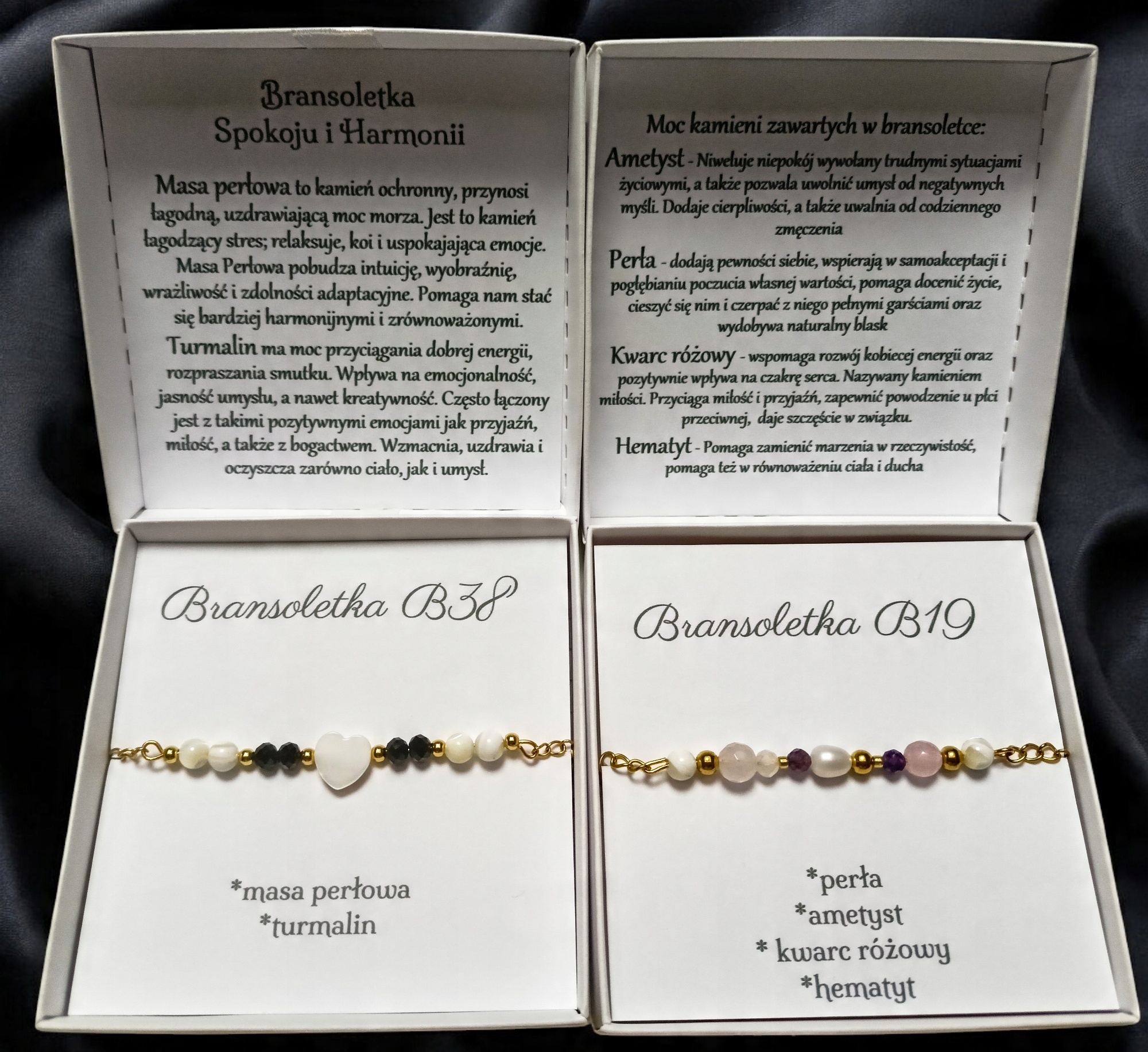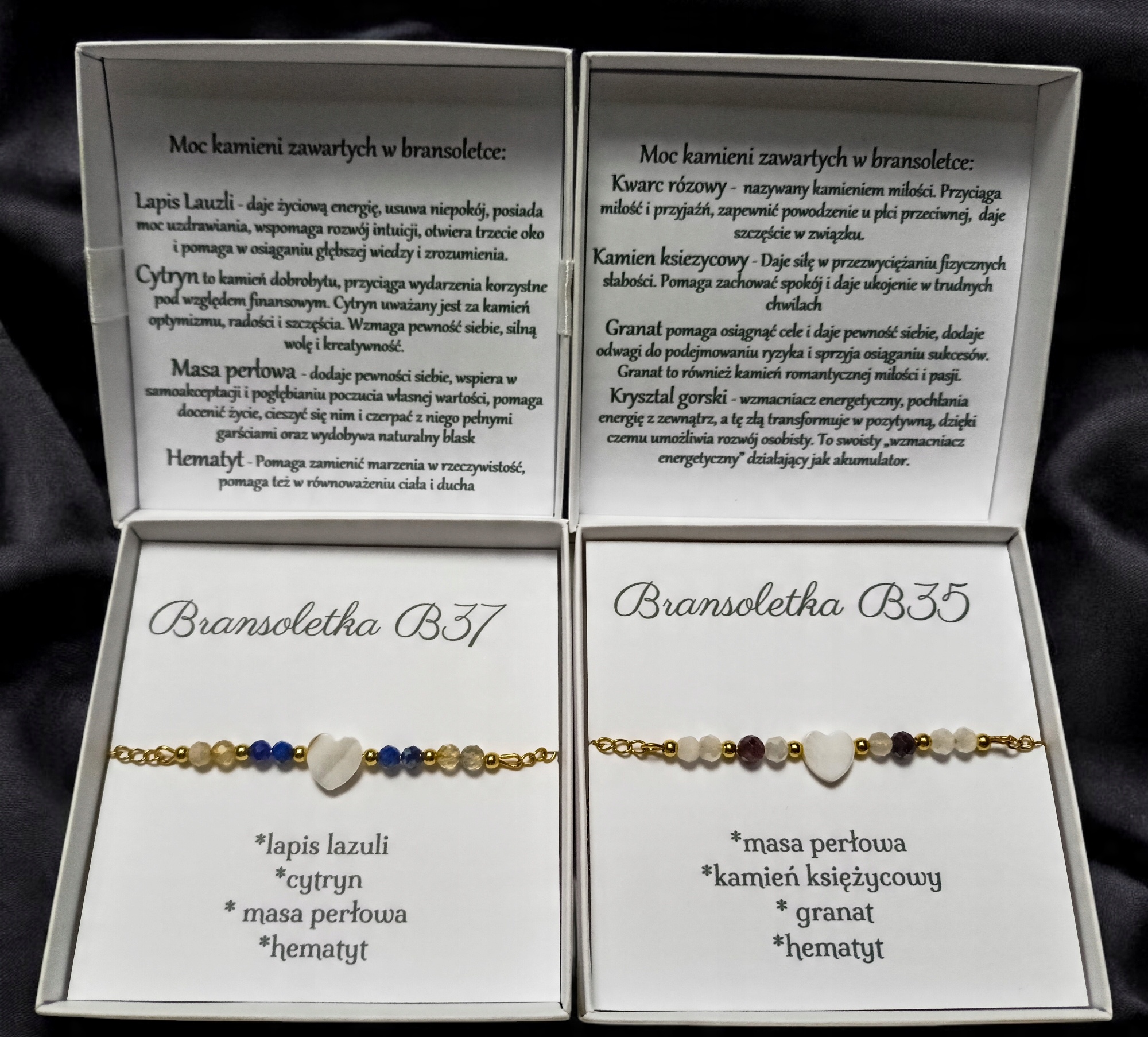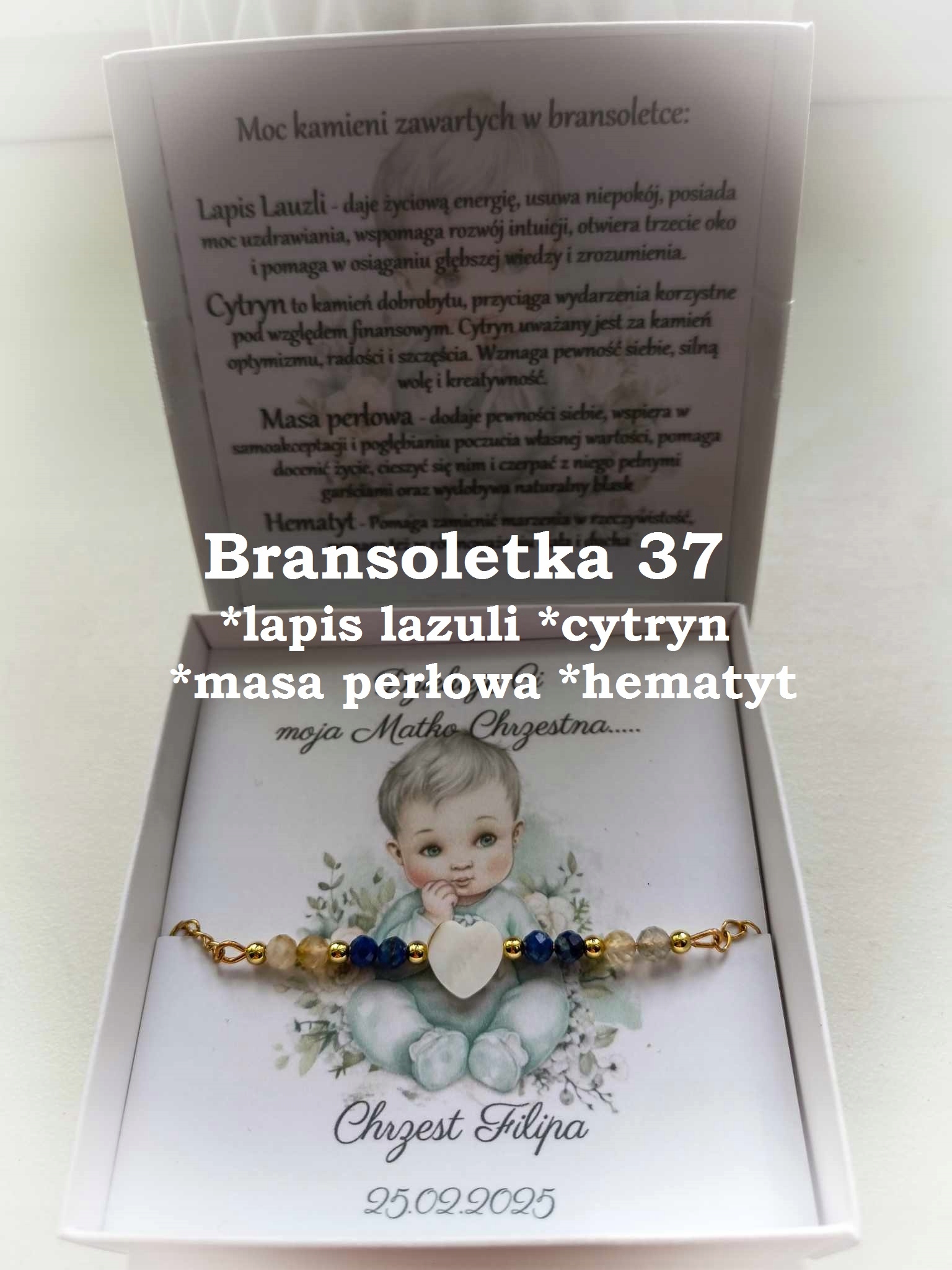 На обратной стороне крышки есть информация для получателя человека из каких камней. Эти камни не только выглядят красиво, но и приносят позитивную энергию. эта информация вставлена как «фабрика», вам не нужно помещать ее в сообщение при покупке.