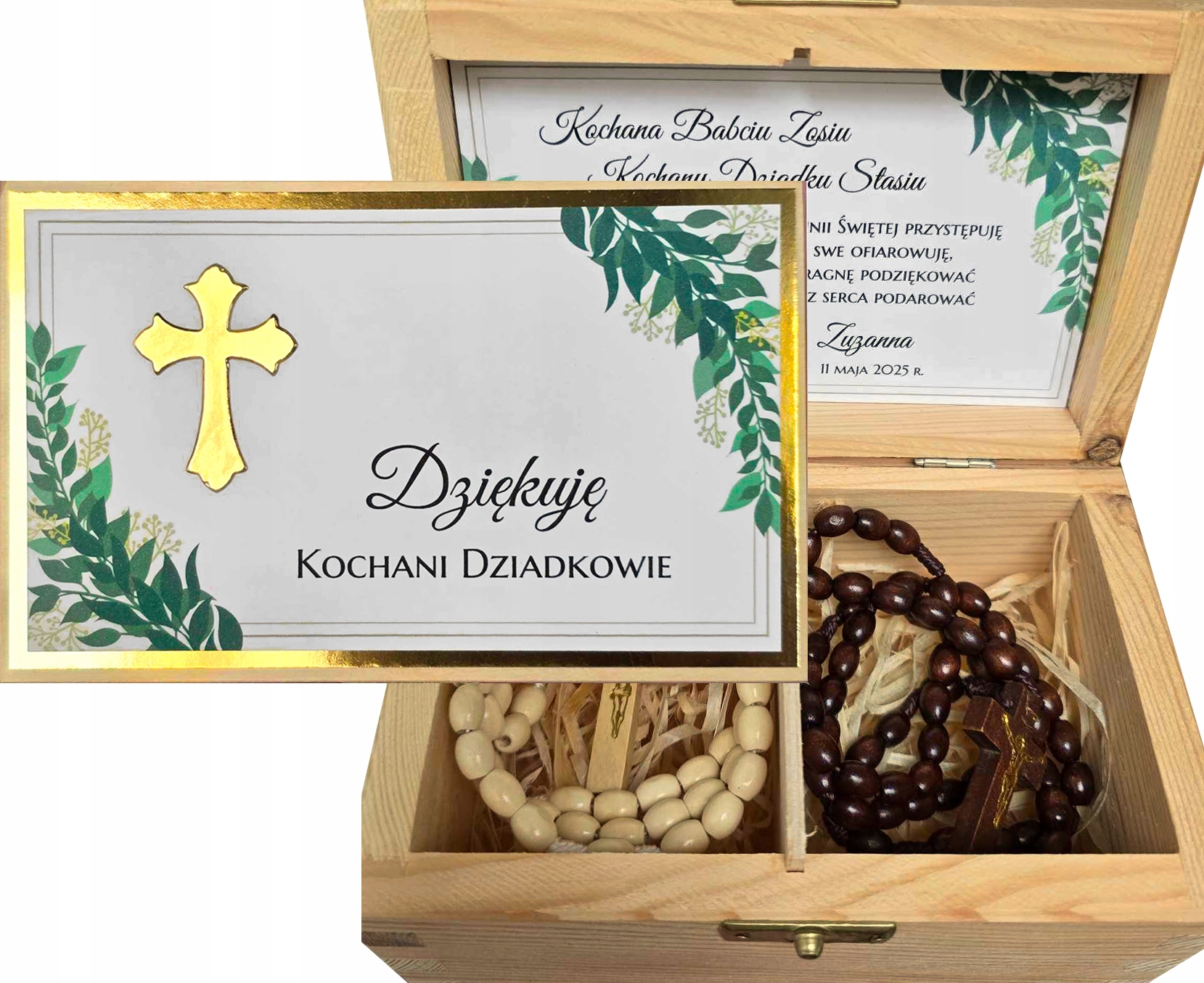 Коробка содержит 2 розарию, показанные на изображениях, используемая бумага- белая, гладкая витрина и зеркальное золотое зеркало. На вершине коробки скрещивание зеркальной бумаги. Эти различия возникают в результате неопределенной конструкции древесины и различных крестов. Маленькие узлы или нерегулярные окраски в коробках не являются недостатком, а только естественная особенность дерева