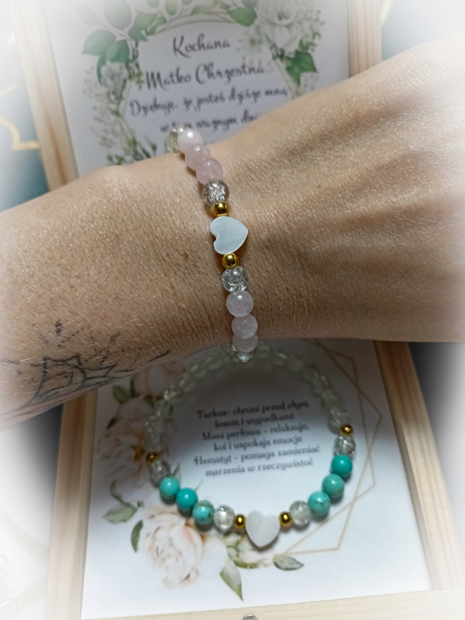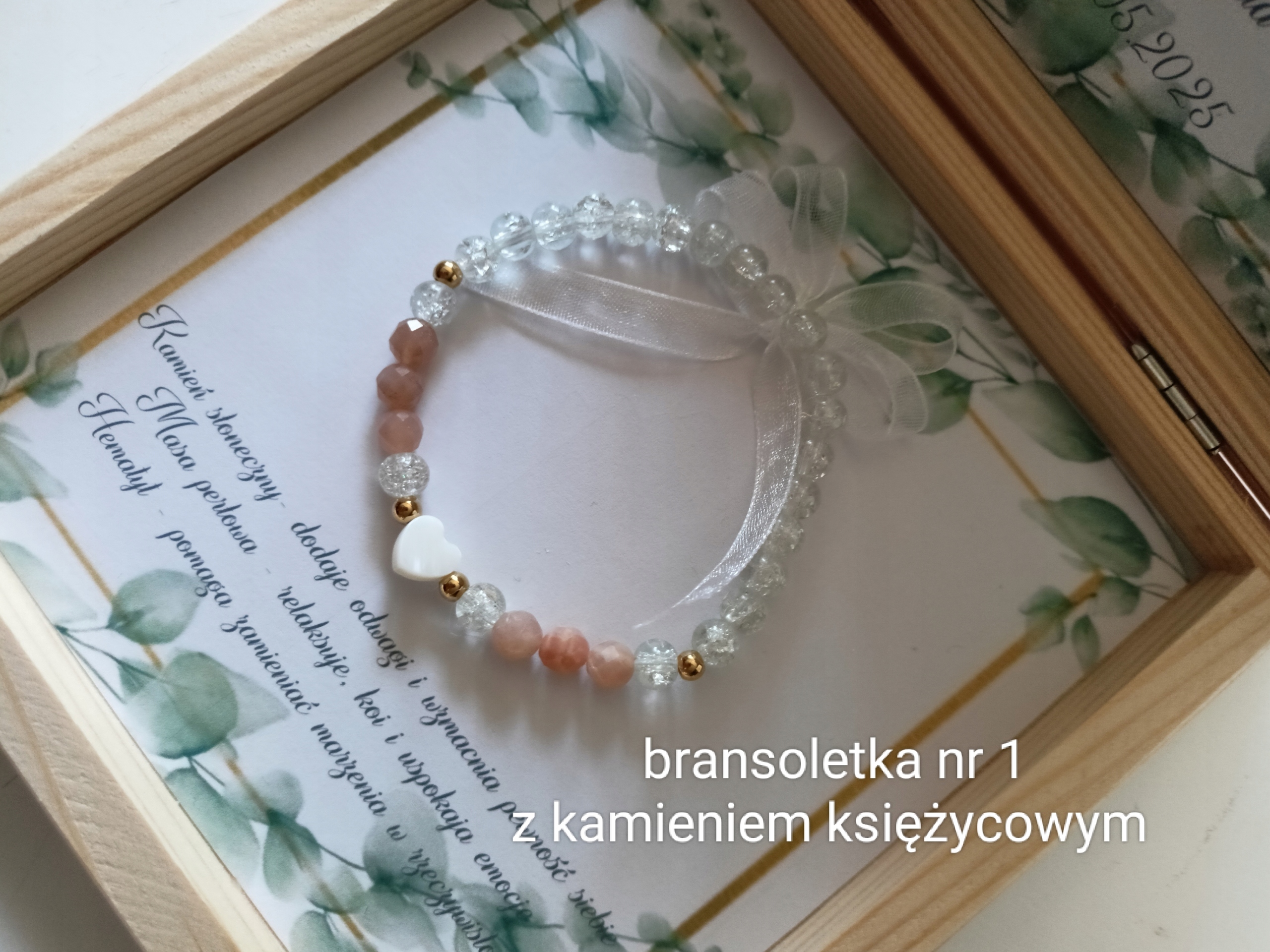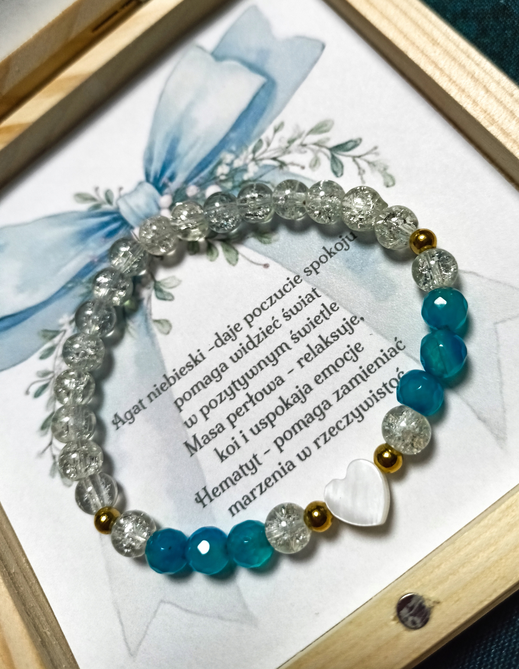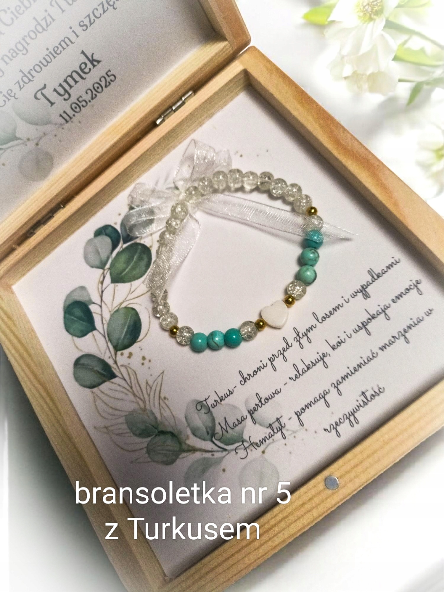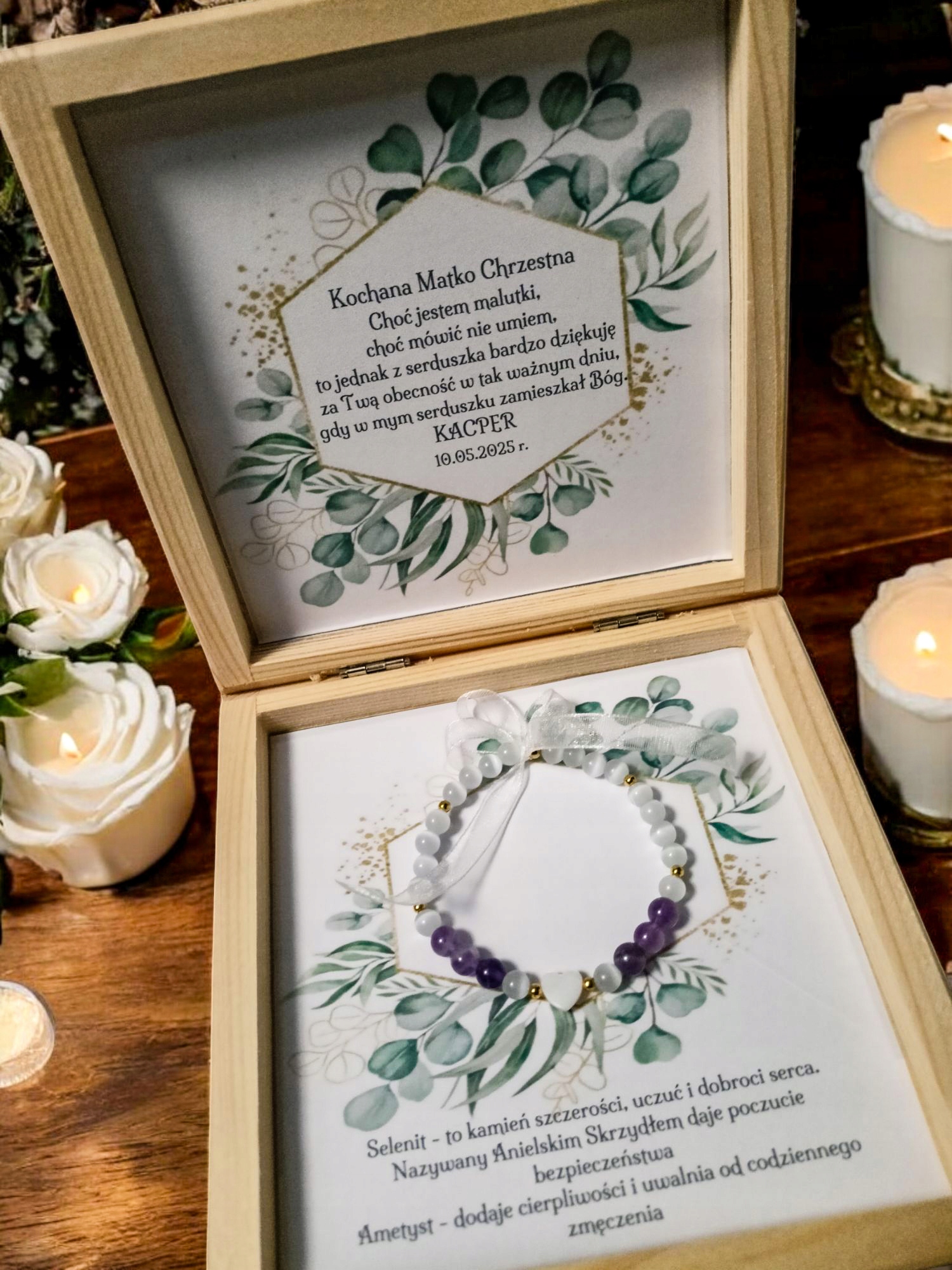 Спасибо в элегантной деревянной коробке с элегантным браслетом из натуральных камней.