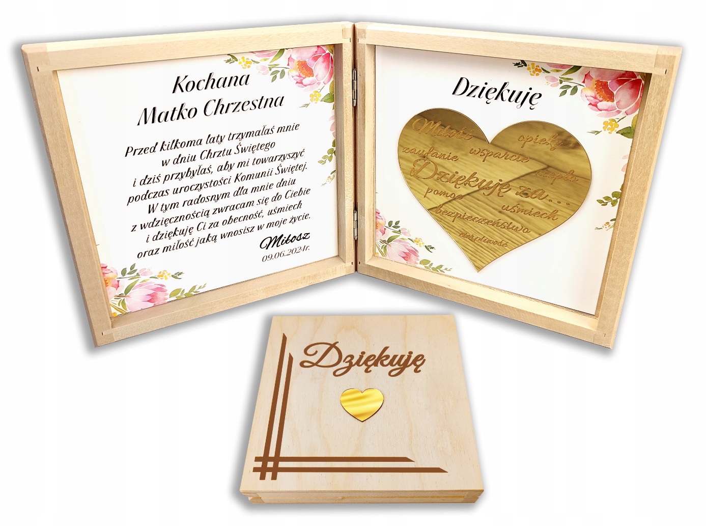 - на гравировке крышки "спасибо" и зеркало золотое сердце