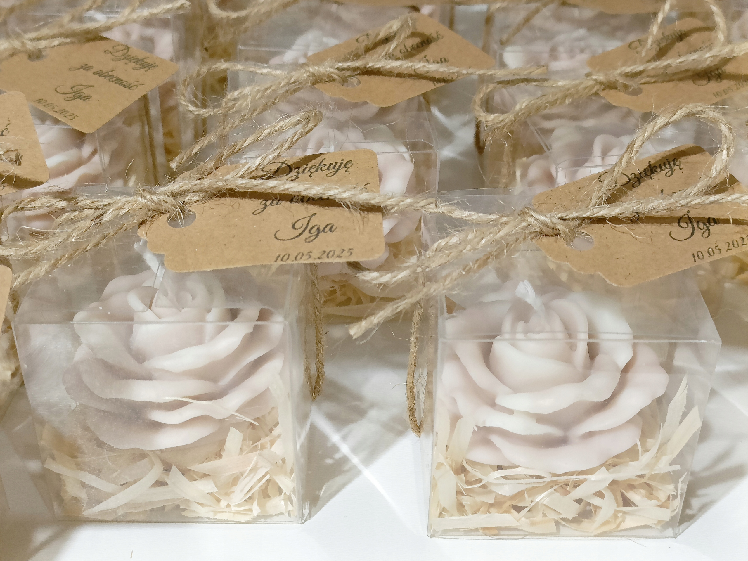 Спасибо гостям свадебной розовой свечи в персонализации контейнера
