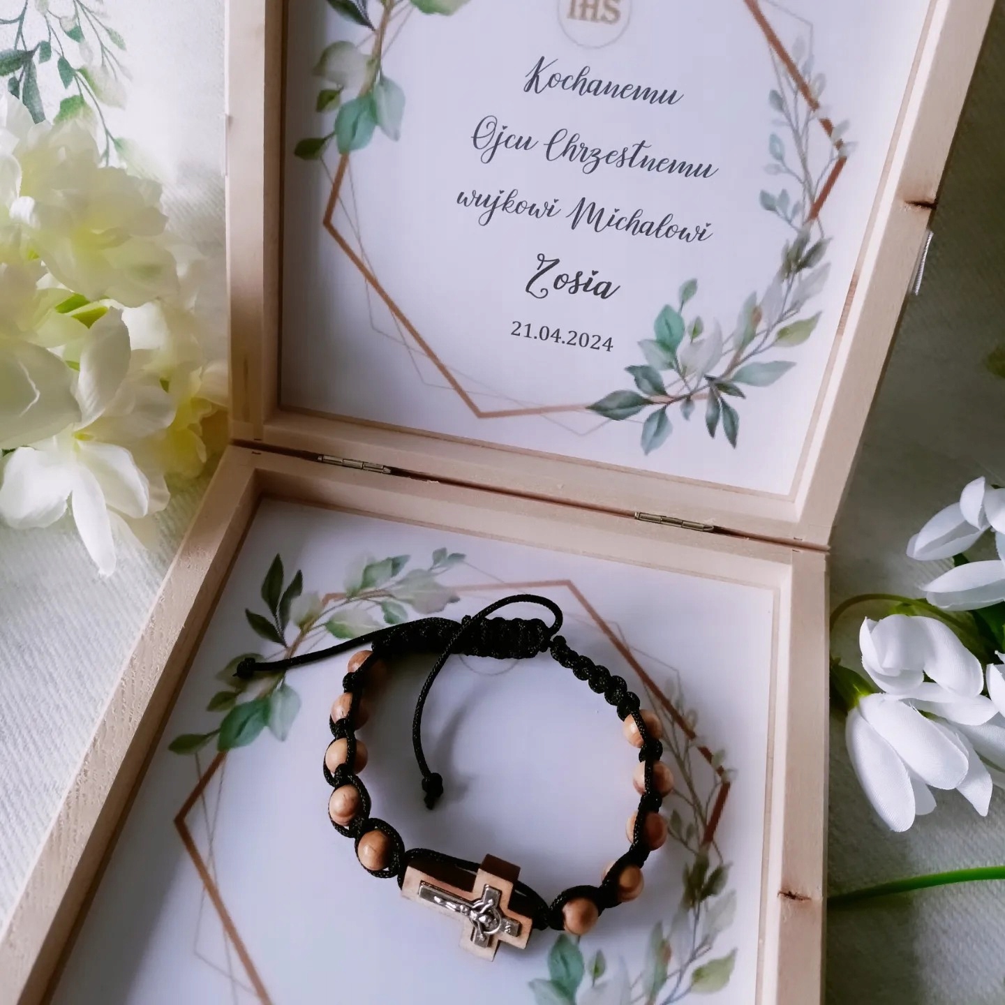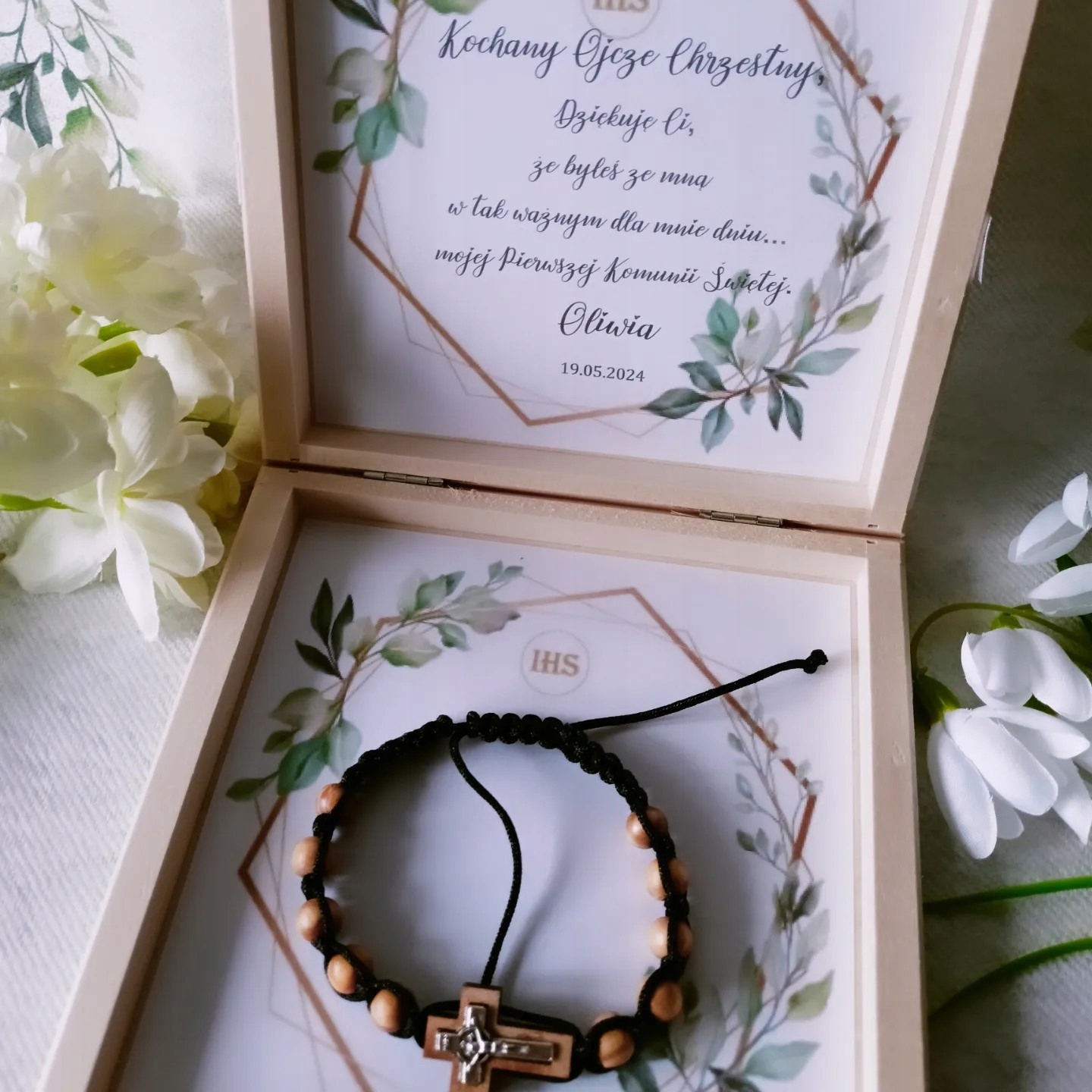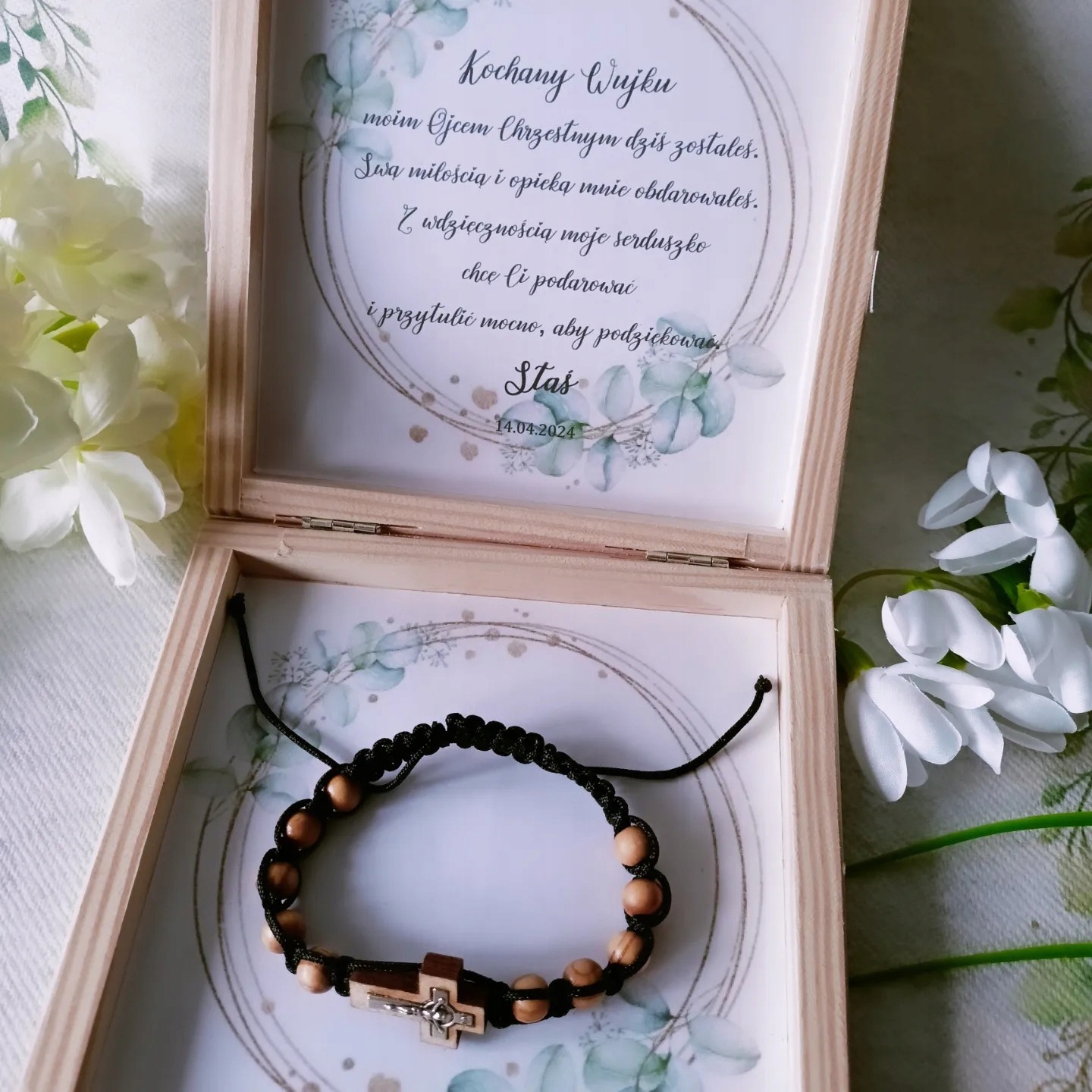 Спасибо в элегантной деревянной коробке с элегантным браслетом.