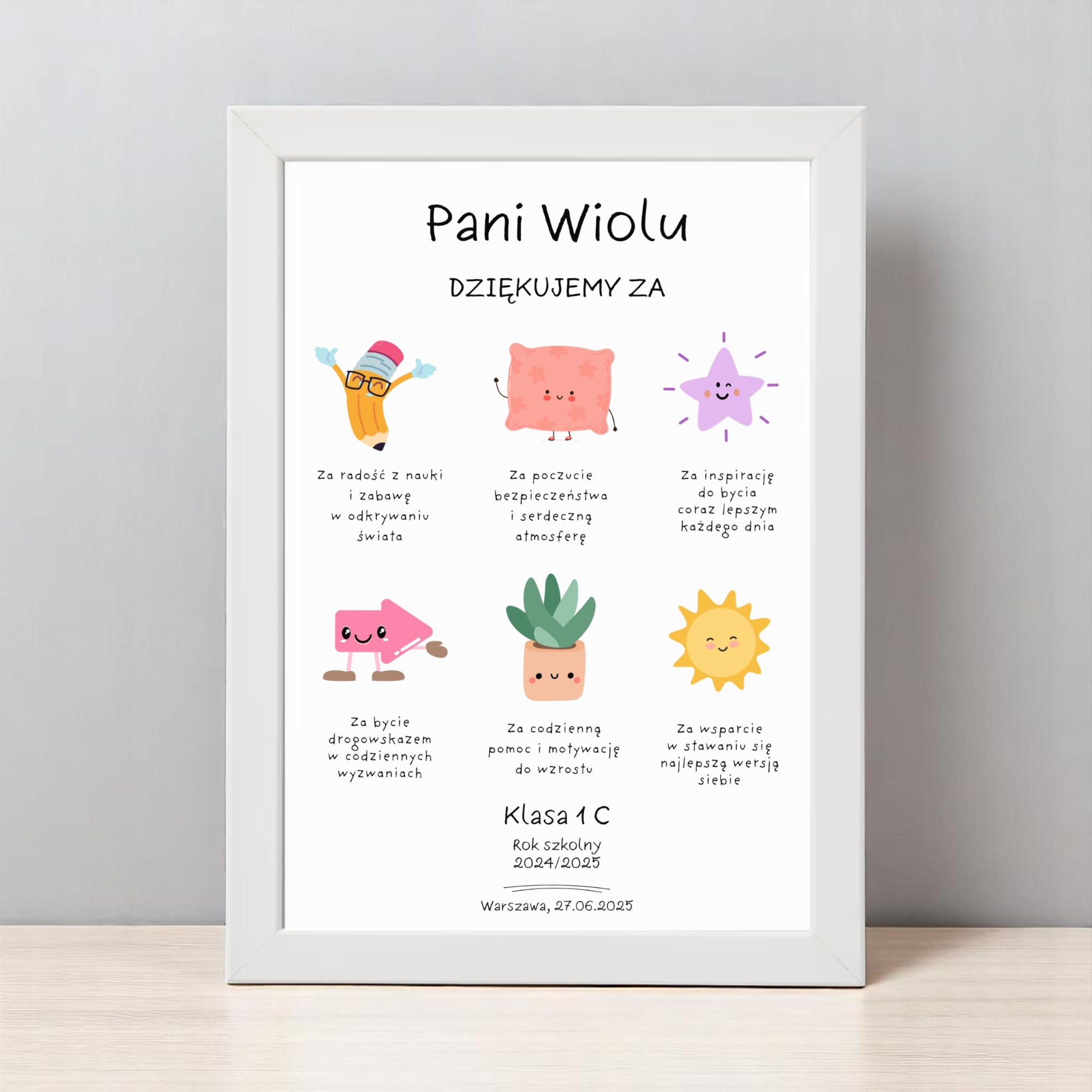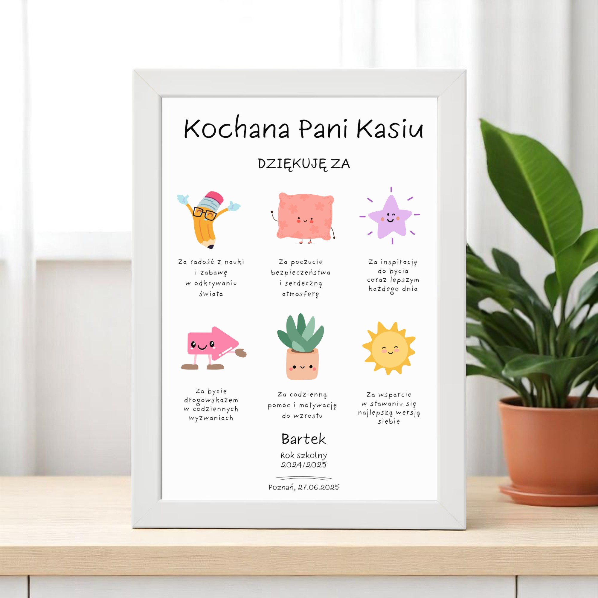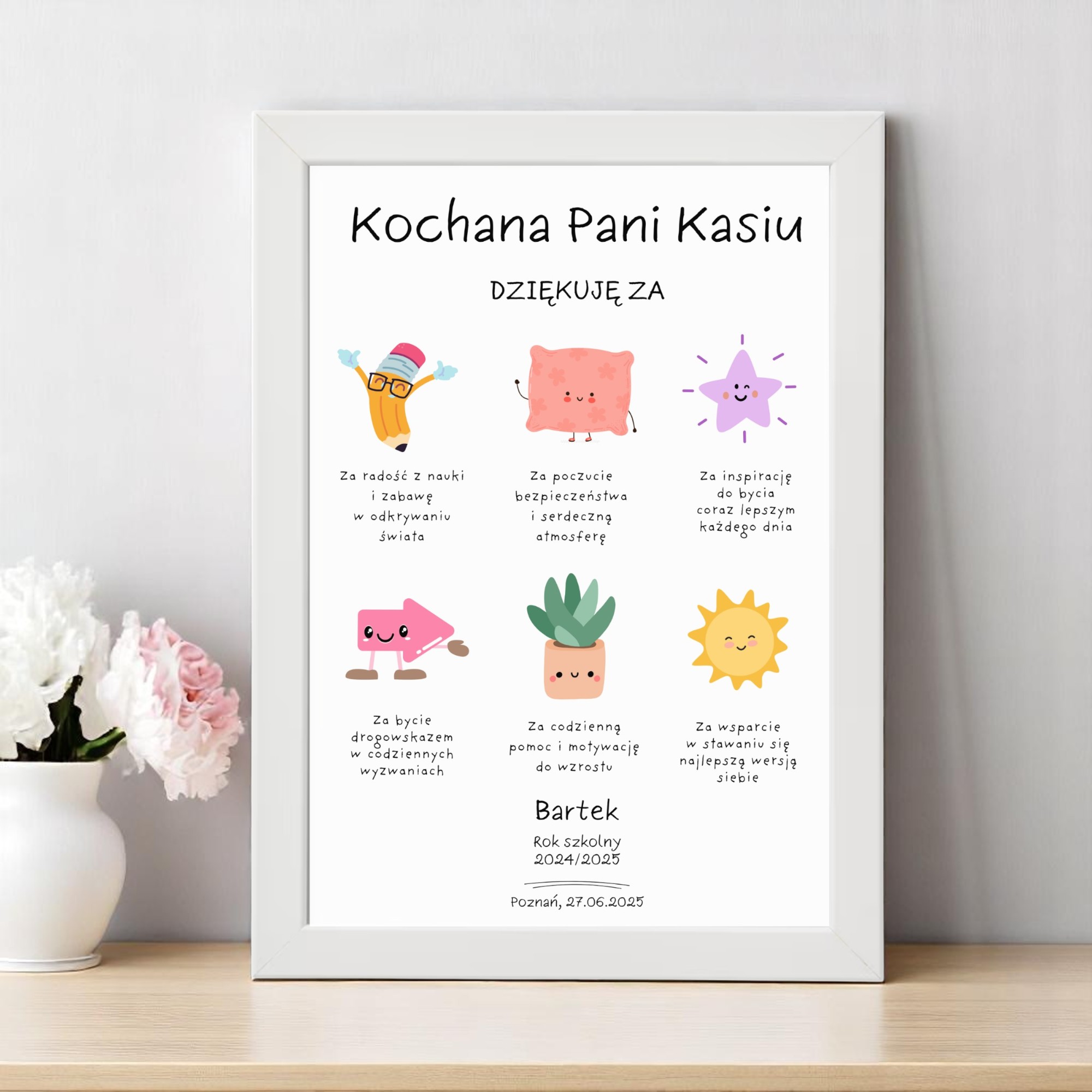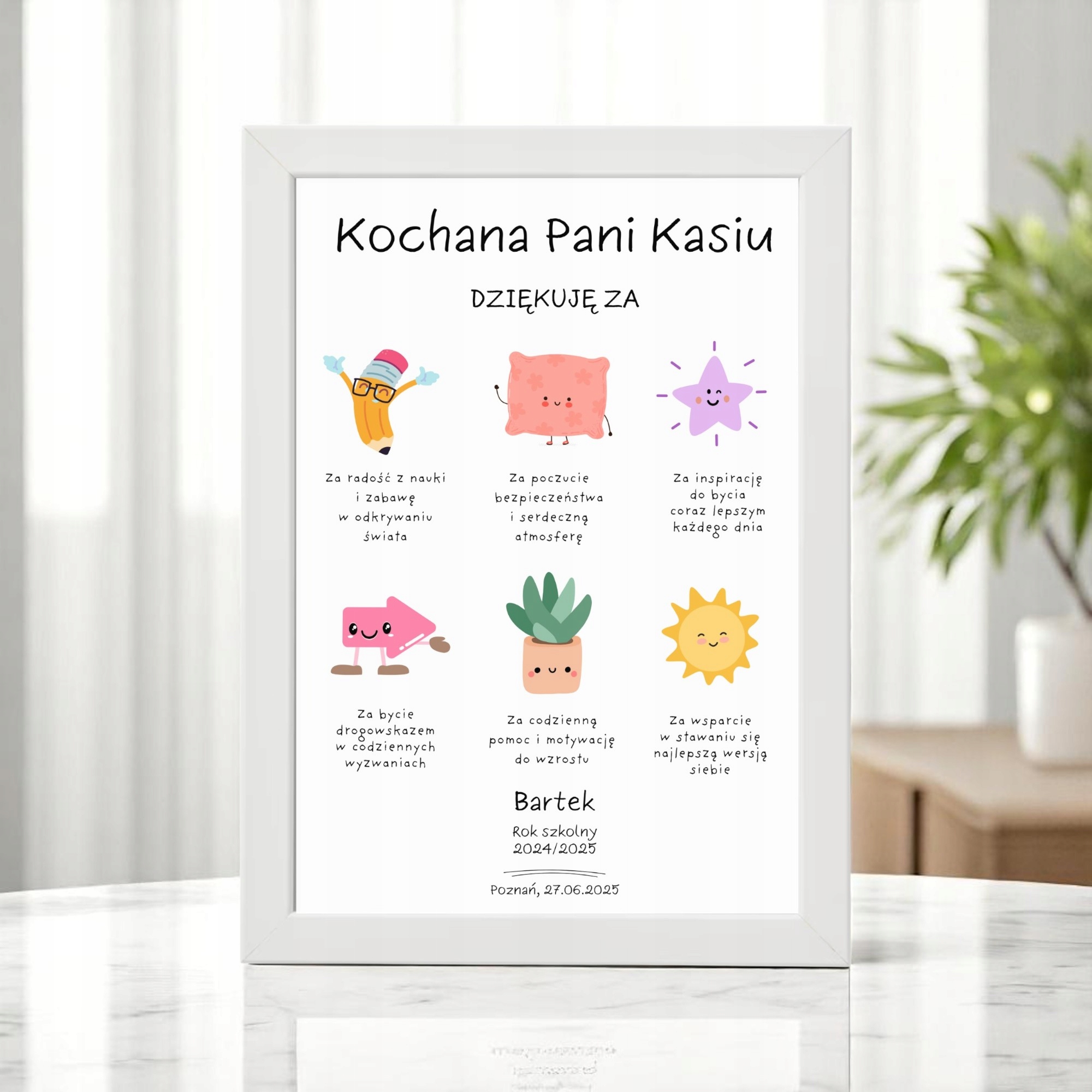 Красочная графика, смешные и теплые подписи и способность персонализации делает эту картину не только украшением, но и сувениром в течение многих лет - идеально подходит для студентов, детских садов или родителей. Для учителя из школы или детского сада. Ученики, дошкольники или родители.
